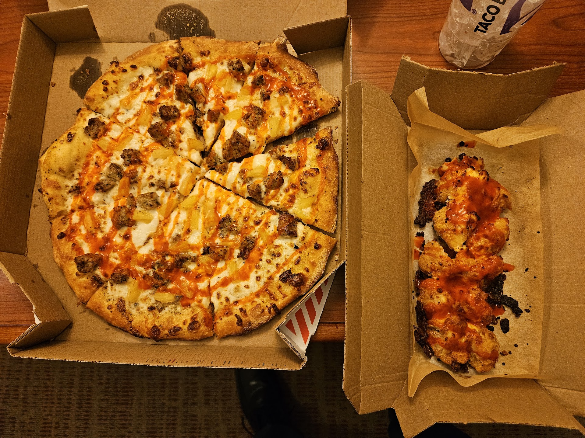 Ā Ā Ā Read moreThe WORST experience i have ever had with food was today jun 23 at 12:20 ... I order twoo medium two topping pizzas one with double pepporni hand tossed. And the other a thin crust with bacon and pepporni....and hot wings i added extra cheede to my order which was a extra charge... And when i recieved my pizza the girl was sweet and eveything but when i opend my pizza i honeslty looked like crust and nothing else so i called in because the store is closed on the insed and i know i cant take my pizzas back at this time of night... As soon as they answerd i asked to speak with a manager or a supervisor about my order.. The boy who answerd told me he was not a supervisor and hesited on giving the actual supervors the phone and told me he is close to a super visor...when i finnaly told him about my problem he then put the supervisor on the phone with me and told him about my problem and i said that he can come get the pizza and just remake the order.. He told me he makes no mistakes... And that he put the correct amount of toppings on there but i was not satifsty with my order at all....he argued with me for about 10 minutes... Told me hell send a gift card in the mail but that is not what i wantrd i just wanted him to remake and come pick up the pizza that was not up to par with my standards.... I said u can remake my pizza but i am comimg in tommrow to talk to somebody incharge because he was so hateful that i didnt trust him with my order and he told me good luck with that there are NO CAMERAS anf nobody is going to be able to see him make this order..... This is the most hatful customer service experience i have ever...