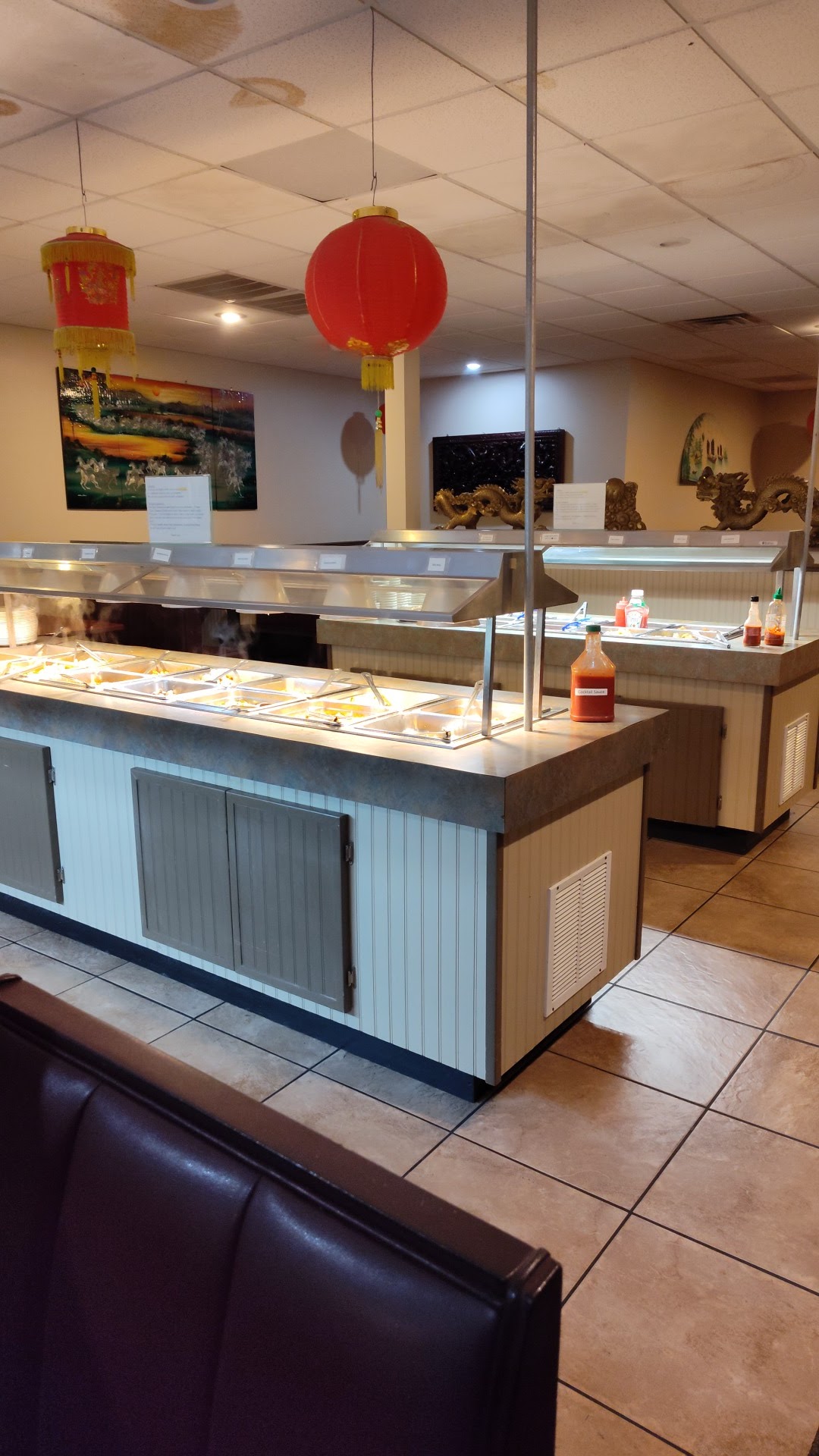 Food wise was awful, everything was leftovers or straight up empty I would understand if we got there late but we got there at 1 PM and what ever was there was dry and cold as in left out for too long most of the foods I tried where salty especially the egg drop soup and the friend wings. The service was okay at one point but eventually we had to ask our waiter for more drinks and to pick up our plates (mind you this were our first plates and they where empty except for a family beside us and an elderly couple) but at this time we didn't mind we thought that there's a possibility that they could be short on people (wich could happen in any job) but when a guy showed up that was running late in the family that was sitting beside us and when he went to serve himself some food the waiter approached him and ask what would HE like to eat she would tell the kitchen to make some more I remember him asking for sesame chicken and some...