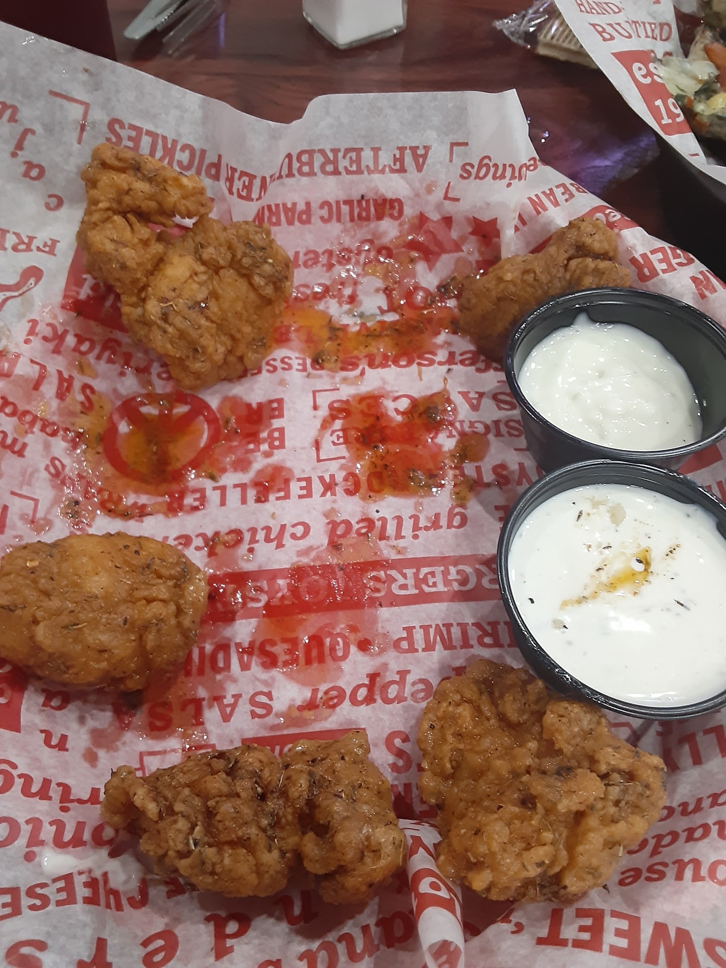 Read moreThe service was adequate and the restaurant was clean enough. The oysters rockefeller, and the baked oysters were good. Market price that day was $27.99 a dozen, which seemed a little pricey. I like a dry rub on wings instead of a sauce, so I asked for a selection of dry rubs, and they told me which ones were dry. But they're not dry. I got the Mediterranean and apparently after they deep fry the breaded boneless nuggets they soak them in butter... 🤦🤷 .. "so the rub adheres to the surface". Which is really dumb, because you don't need butter to make seasoning stick to things that just came out of a fryer, and the server should mention that "oh by the way these will be drenched and butter that will collect in pools on your plate". On top of that they were pretty much flavorless. They tasted like fryer oil that needed to be changed. We went there because we heard they had grilled oysters which we eat at Turtleheads all the time, and very much enjoy. We were told they were out of grilled oysters. I asked why they couldn't just grill the ones they were serving raw, and apparently they came in frozen and already grilled. We had the fried pickles also which were decent. Prepackaged, also. So all in all our first visit will probably be our last visit. There's no compelling...