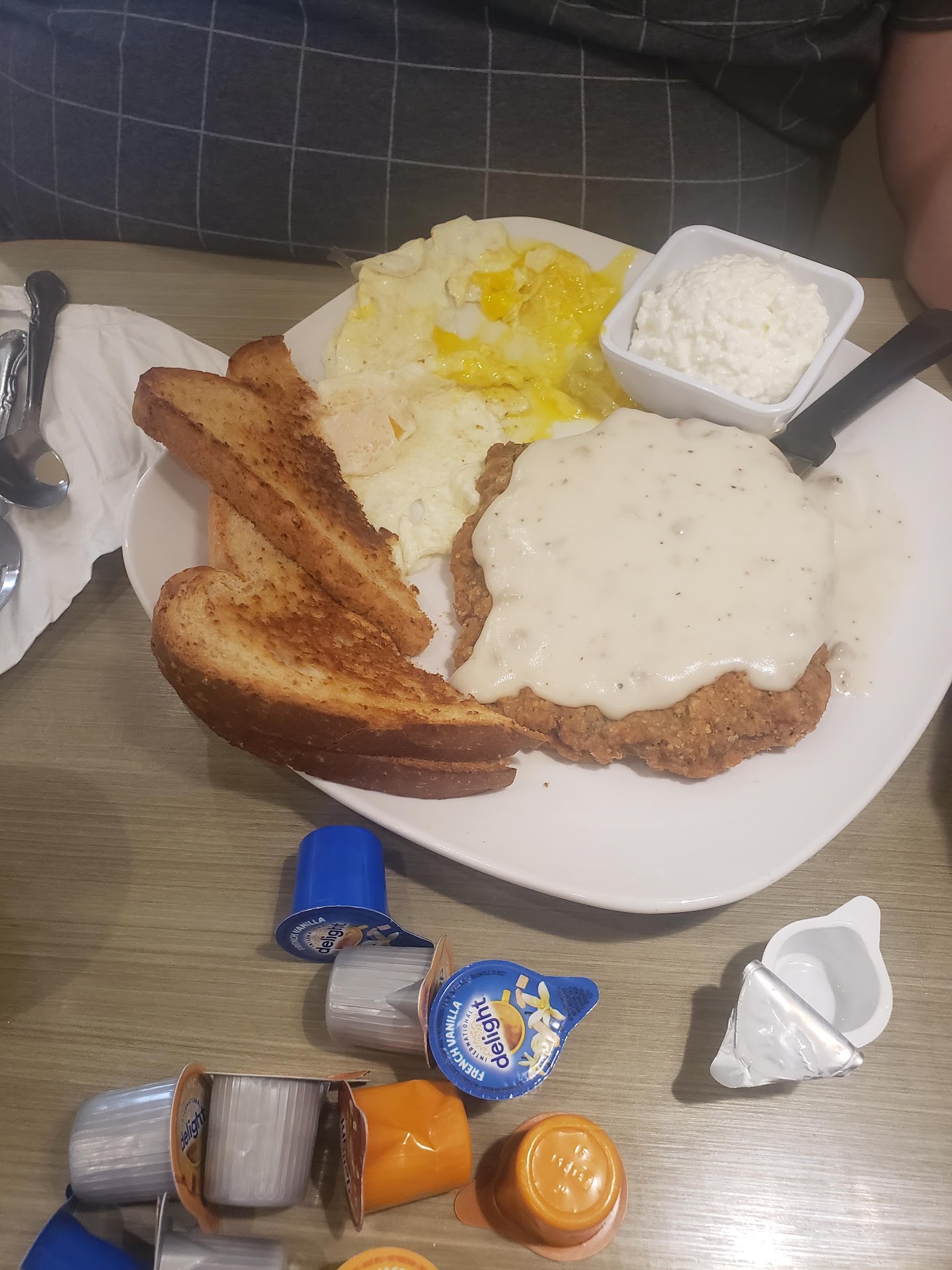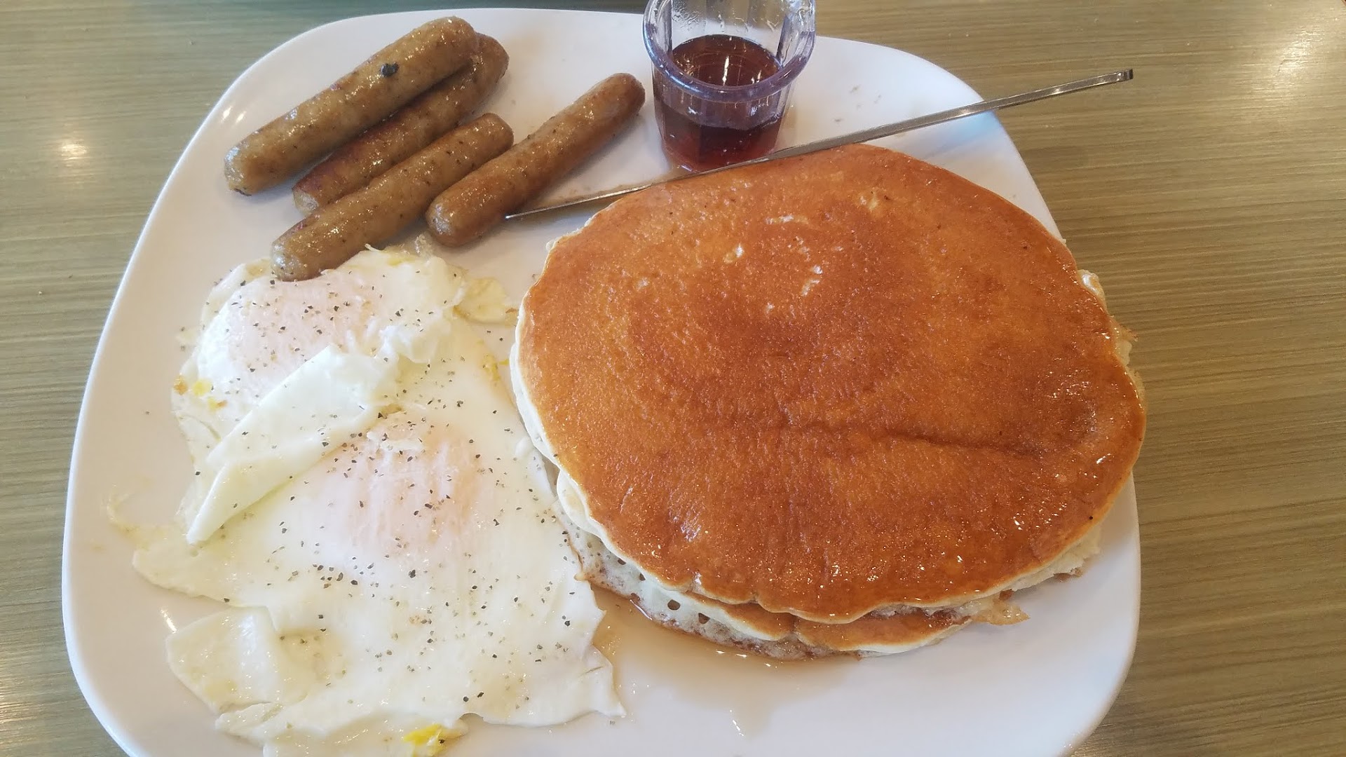 Read moreTried it out for the first time about a week ago for lunch after Sunday service and enjoyed it! Took a friend and we enjoyed breakfast for lunch as it was my first time there. I ordered the 2 stacks of buttermilk pancakes with sausage links and 2 eggs over easy. I believe it was around $8 for my brunch. Everything thing was cooked to perfection and the atmosphere was nice. Bathrooms were clean and our waitress was very helpful. She checked on us several times and even had suggestions for the menu items. I'd go back again and may check out the cheeseburger and fries special during the week.