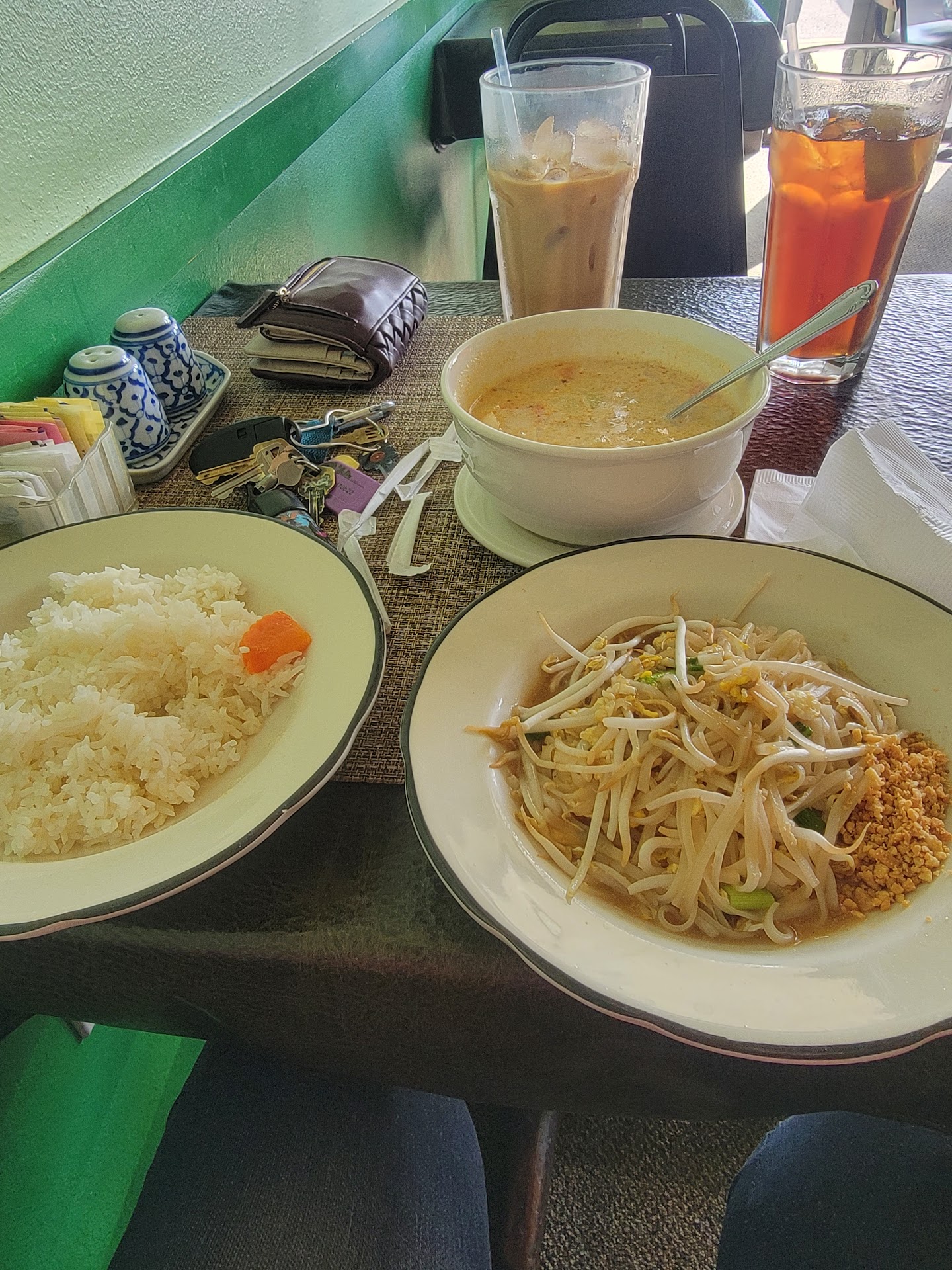 ย ย ย Read moreBe sure to try this lovely little Thai place not far from I-44. Woke up with a strong craving for Thai and came to Kinnaree for the first time (and not the last). The restaurant was completely empty and I was worried I had walked in during the very common service break you often have to contend with Asian quisine but out from the kitchen walked the waiter (owner?) who seated me as soon as I walked in. I ordered a Thai coffee, unsweetened iced tea, yellow curry with chicken, and a side of pad Thai. My waiter inquired as to spice level and recommended a 1 as I had never been there before reassuring me if it wasnt spicy enough they would increase it until it was perfect for me. He returned with my drinks and a lovely little bowl of what I think was cabbage and rice soup. The Thai coffee was perfectly sweet and robust. Before I could finish my soup the food was at my table piping hot and fantastically fragrant. The curry was a little thinner than I am used to closer to a soup consistancy. A sweet, salty, spicy bowl of delicious, well rounded and balanced flavors. I don't eat a lot of spicy food while I travel and it was a little more mild than I was expecting but I could still feel a little burn on my chapped lips. The portion was MORE than fair (I have lunch packed for work tonight and possibly tomorrow. The side of pad Thai was perfect not dry nor overly sauced. I would have liked a little spice to it but the flavor was perfection for me. After gobbling the pad thai I found myself too full for much else and my waiter took my plates to pack them to go for me. Overall: Service:...