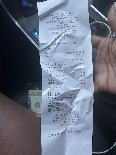 We ordered two meals here tonight, January 28, 2025. A Crispy Chicken sandwich with a large fry, which was $8, something the 2nd meal was a Double Quarter Pounder, with a large fry and it was $7 something. We waited a hot minute in line for this small amount of food with barely any cars in front of us.