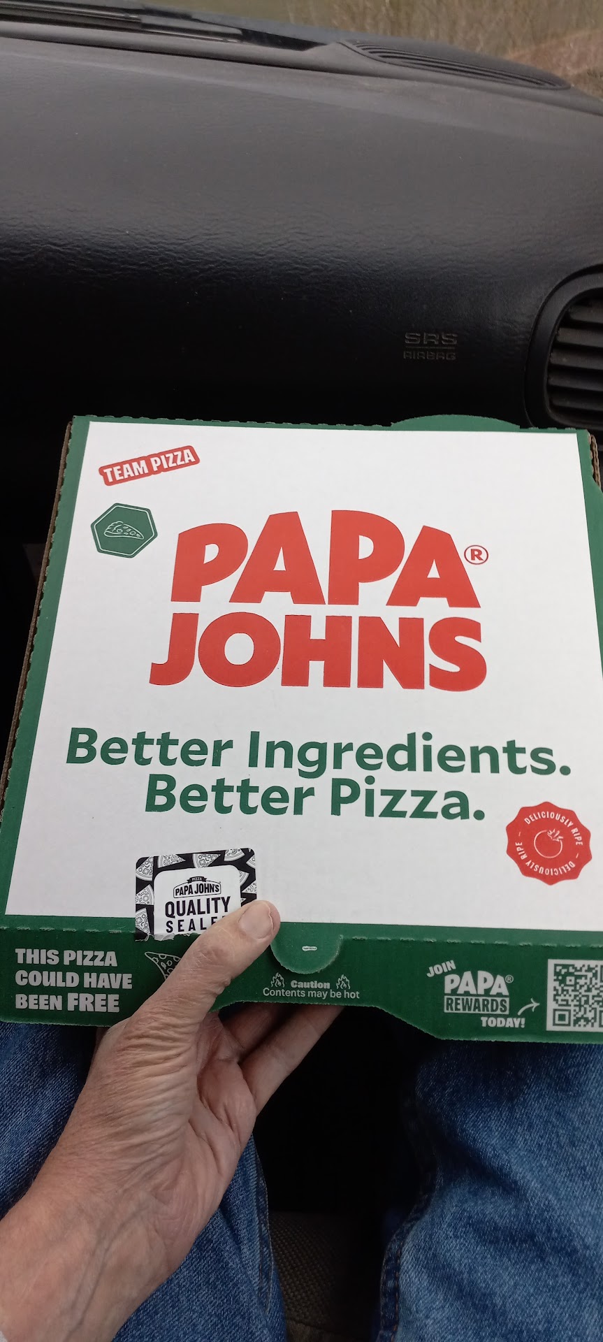 Read moreSo I was hungry about 2:30 in the afternoon and I thought you know what I want something that had no meat vegan style kind of sort of so I went to Papa John's and got me one that crustless pizzas and it was so good I could not believe it I had the best toppings and the best amount of cheese and it was so good when I got home then I actually took it out of the container put it on a bed of pasta and Mayo great fabulous dish. So I suggest you try that new crustless pizza because the problem with the pieces around town and all the fast food pizzas whatever you want to call them Domino's Pizza Hut everywhere the problem is the crust that Papa John's has solved that problem so kudos to you and yes everybody in the United States must go to Papa John's and try...