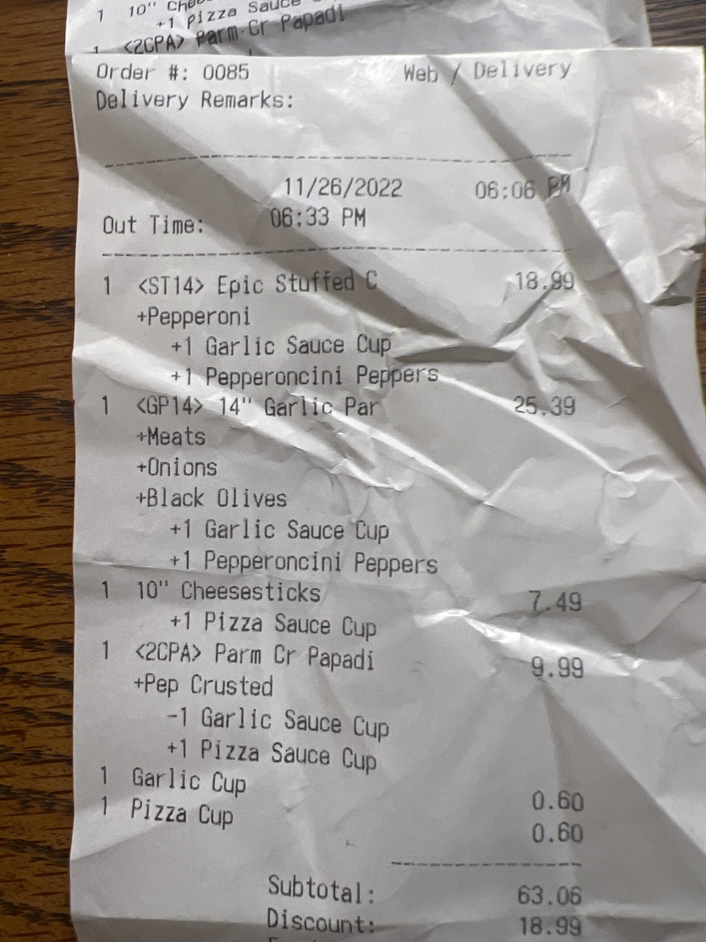 I have 2 Ratings actually. One is 2 stars and the other will be 5 stars. First, never having an issue with them before now, even during the COVID-19 era, I ordered a pizza and a papadia. They arrived 50 mins later, they were cold. I'd spoken to an associate 15mims prior asking where my food is. She said it was "out for delivery already". When the Driver arrived I asked if he had been out and he said no, he just went and got the order. We were visibly bothered but I assured the Driver it wasn't his fault. Then I said Thank you and he turned around with a nasty attitude and said, "Yeah, have a good night". What was lie for? And what was the attitude about from the Driver about??? Anyway, my 2nd Rating is 5 Stars. After the Driver left I called and spoke to the Manager. I want to give Kudos to him for handling things beautifully. He genuinely apologized and offered an immediate solution. He'd remained calm and professional. (There are those places that if you call to tell them they gave you the wrong order, they act as if you're questioning their humanity!) I appreciated Him underatanding where I was coming from and in turn, I understand where He was coming from. Thank you Papa Johns Manager for fixing this. We will always be a...