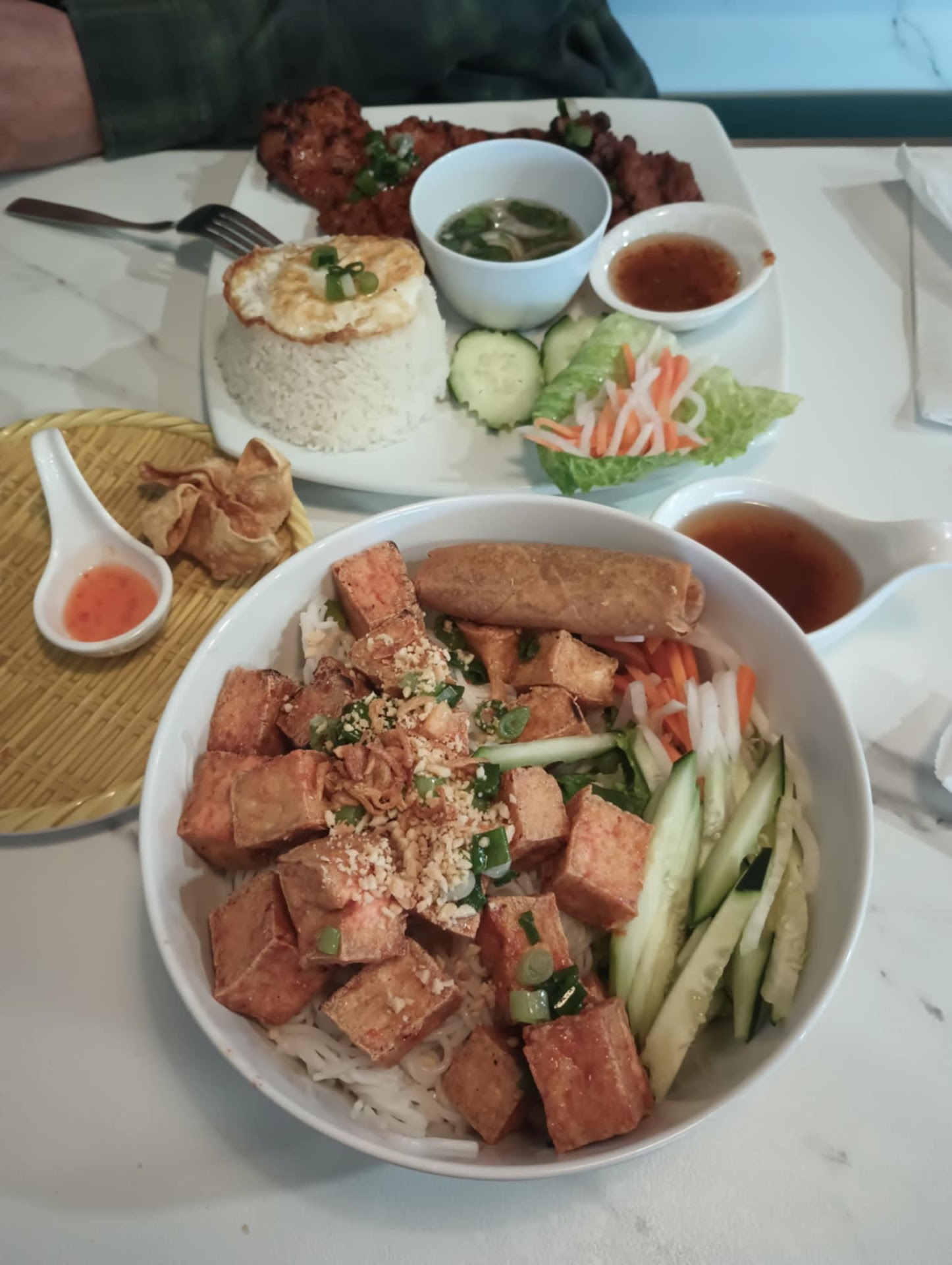 For my entrée, I indulged in the Pho Queen, elevated with an extra portion of short rib. The ribs were a revelation, so tender they practically melted off the bone, infusing the fragrant, soul-warming broth with rich, savory depth. My husband opted for the Korean BBQ plate, which was equally delightful, showcasing bold flavors that left us both thoroughly impressed. The ambiance of the restaurant was inviting—simple yet impeccably clean, with a warm, welcoming atmosphere that enhanced our dining experience.