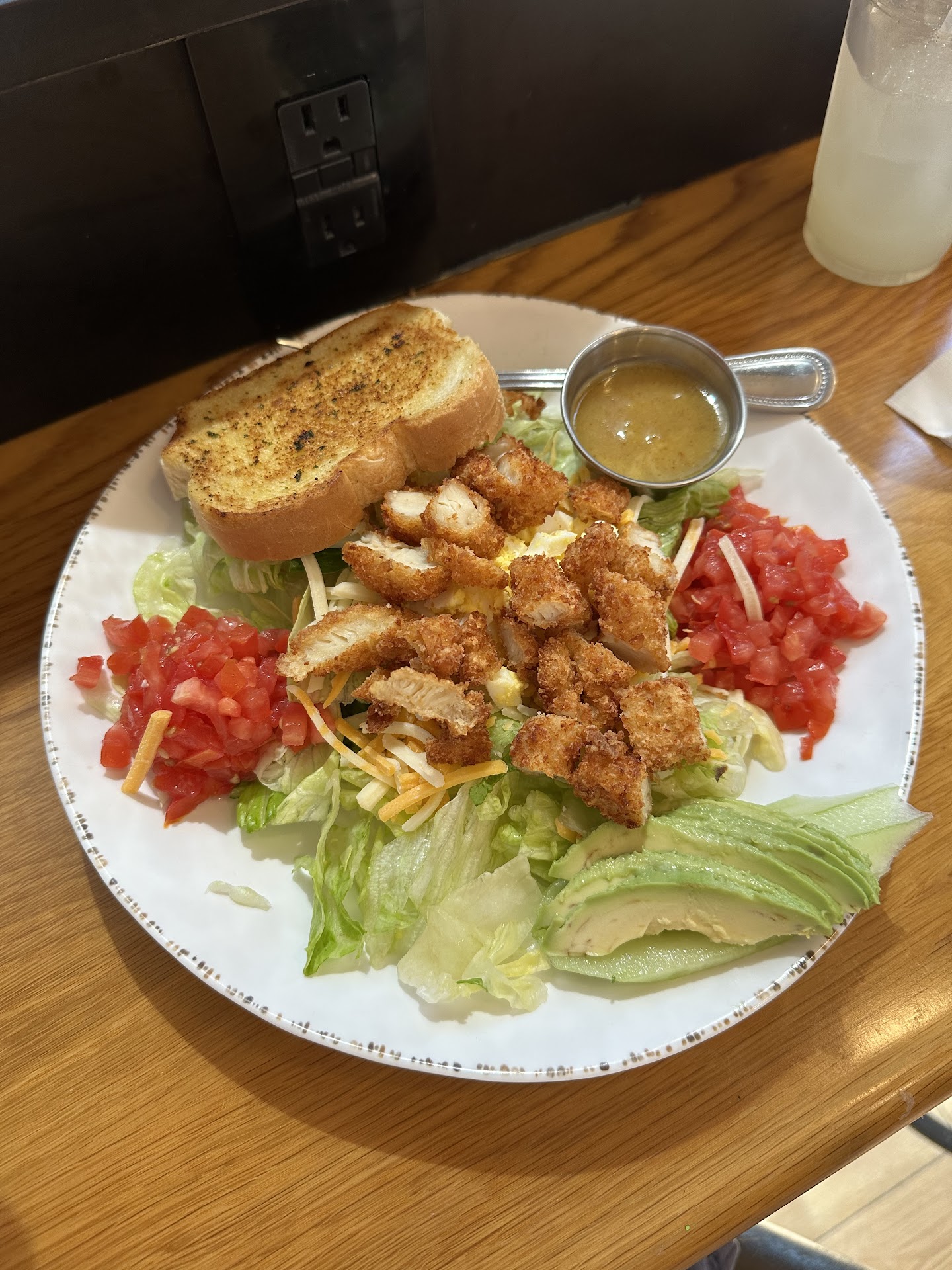 Read moreStopped by for lunch before a nearby appointment. 6 people waiting in line for the door to open. Took only a few minutes before nearly every seat was full. Order at a counter, take a seat and wait for delivery. Get your own drink, napkins, etc. The place is very poorly ventilated! Not impressed but the whole experience was ok as was the food, just ok. Nothing special. I ordered the fried chicken salad. The salad seemingly had very fresh looking ingredients but they were ordinary, boring salad ingredients and the tomatoes were excessive. The fried chicken was pretty good. I was immediately put off by being solicited for a tip when I paid at the beginning of my visit. I donât understand why any employee would be asking...