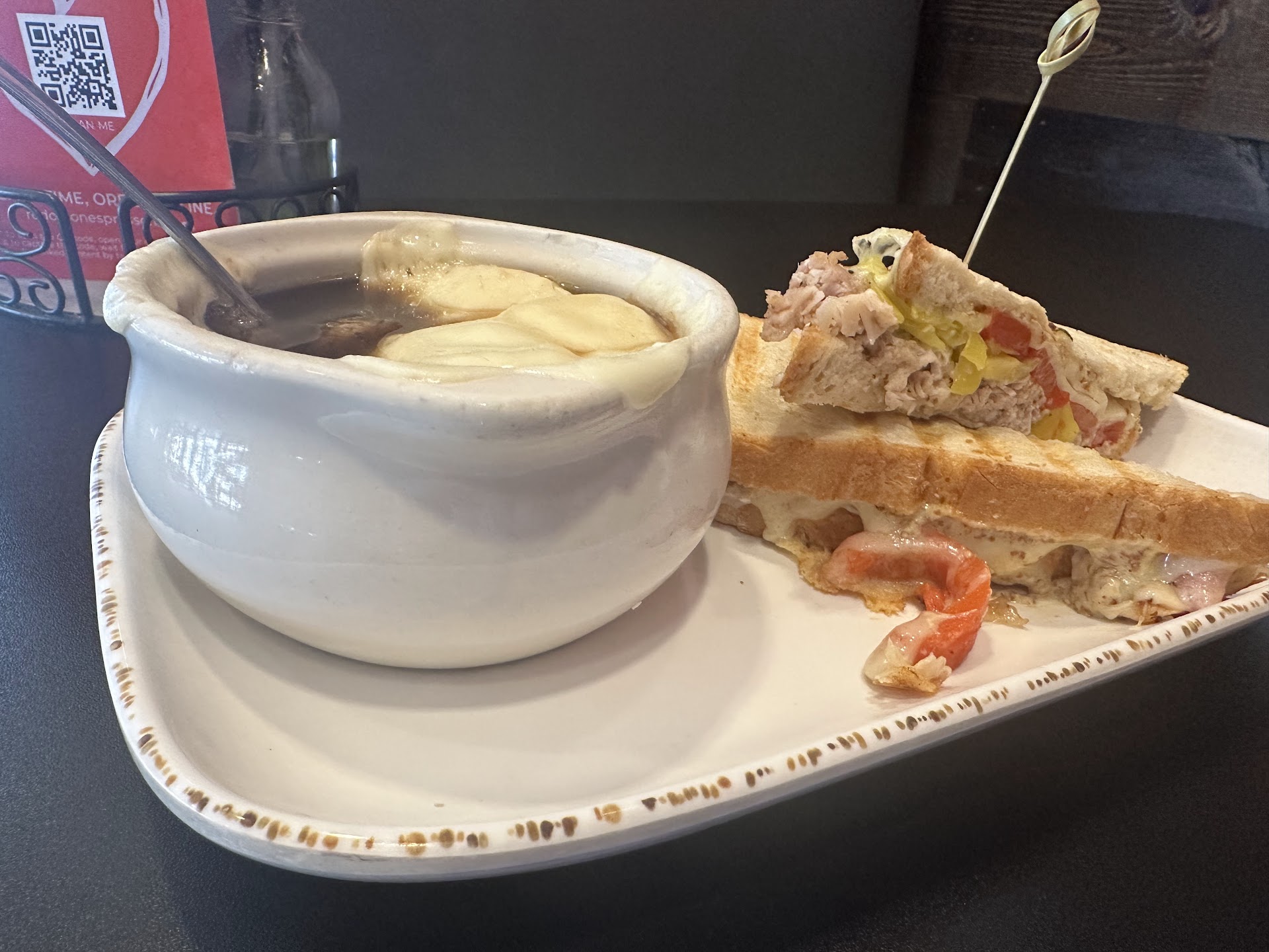 Try and avoid the French Inion Au Gratin soup. The last three times Iâve gone itâs not at all be melted. Itâs two medium slices of provolone on top barely melted. Tonight I took a small bit after having it submerged in my soup. I almost choked on it, had to grab it out of my mouth. This is very unsafe. Iâve told staff in the past about it but never asked for it to be heated up more (donât wanna be that guy), but after pretty much almost choking on it tonight I needed to leave a review. Please MELT THE CHEESE! My spouse had bariatric surgery and could have eaten it if it had been melted and only one slice. I told her she shouldnât eat it and we are glad I didnât, that could have gotten caught in her stomach and caused a lot of issues. One slice, fully melted is the classic Au Gratin French Onion Soup. I need to see the rim of the bowl through the cheese. I get it, itâs Joplin Mo, folks like their dairy but when itâs that thick and not melted yuck.