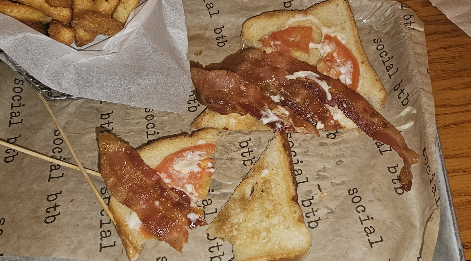 Tried it out for lunch due to high recommendations from a regular and I enjoyed the food and atmosphere. I ordered the cheeseburger with mayo, mustard, lettuce, ketchup, and grilled onions and a side of onion strings. Lots of butter is used in their dishes and personally I love that! My burger was cooked medium well and flavorful. The onion strings were very good and juicy! Friend of mine ordered the chicken tenders with the garlic parmesan dip and gave me a sample. I thoroughly enjoyed the sample and will bring my wife back to try that out. There is ample seating and a separate sports room. Televisions are in multiple places and can be viewed from just about every seat in the house. Only issue I had was with my server. I stated this was our first time here and he never seized at that opportunity to give me a rundown on what Social BTB was about. Yes I understand the menu is fairly simple, but I had to find out about to boom boom sauce from another reviewer, he never stated what his personal favorite was. Little things like that makes the experience all the more enjoyable. The opinions stated here are my own and not provided to me by the owner/operator of this establishment. My goal is to provide honest feedback on my experience, and encourage everyone to provide feedback on their experience. Your experience and opinion may differ based on a number of factors. No monetary compensation was received and I was not required to write a positive or...