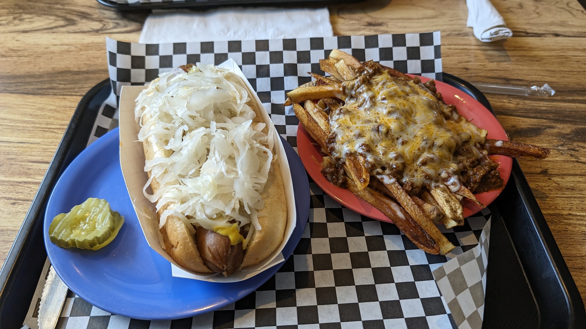 I liked it for the most part. One gripe. There's been absolutely no seasoning on their fries the last couple times I've been. Not even their curly fries which are traditionally meant to be seasoned with salt, onion powder, garlic powder, cayanne, and paprika. Those seasonings are what are ususlly associated with the curly fry flavor that we all think of when we order curly fries, but none of that was on there it was just potatoes thrown into a fryer and taken out and put on the side and if there was seasoning on the fry there wasn't enough for it to come through at all. The fries the last 2 times I've been here weren't as crispy as I think they should have been. They were actually quite soggy. The curly fries were crispoer, but perhaps not as crispy as they probably should be. I also tried the chili cheese fries and even then I feel like the fries needed to be seasoned. There's nothing fun about unseasoned soggy fries on the side. I'd love if they'd just season the fries even if it's just a traditional run of the mill seasoning mix. Anything would have been better than nothing. The service was great and staff were nice, the place feels kinda like someone's front room or hangout den. It feels kind of like I was in someone's house which is an experience that i actually...