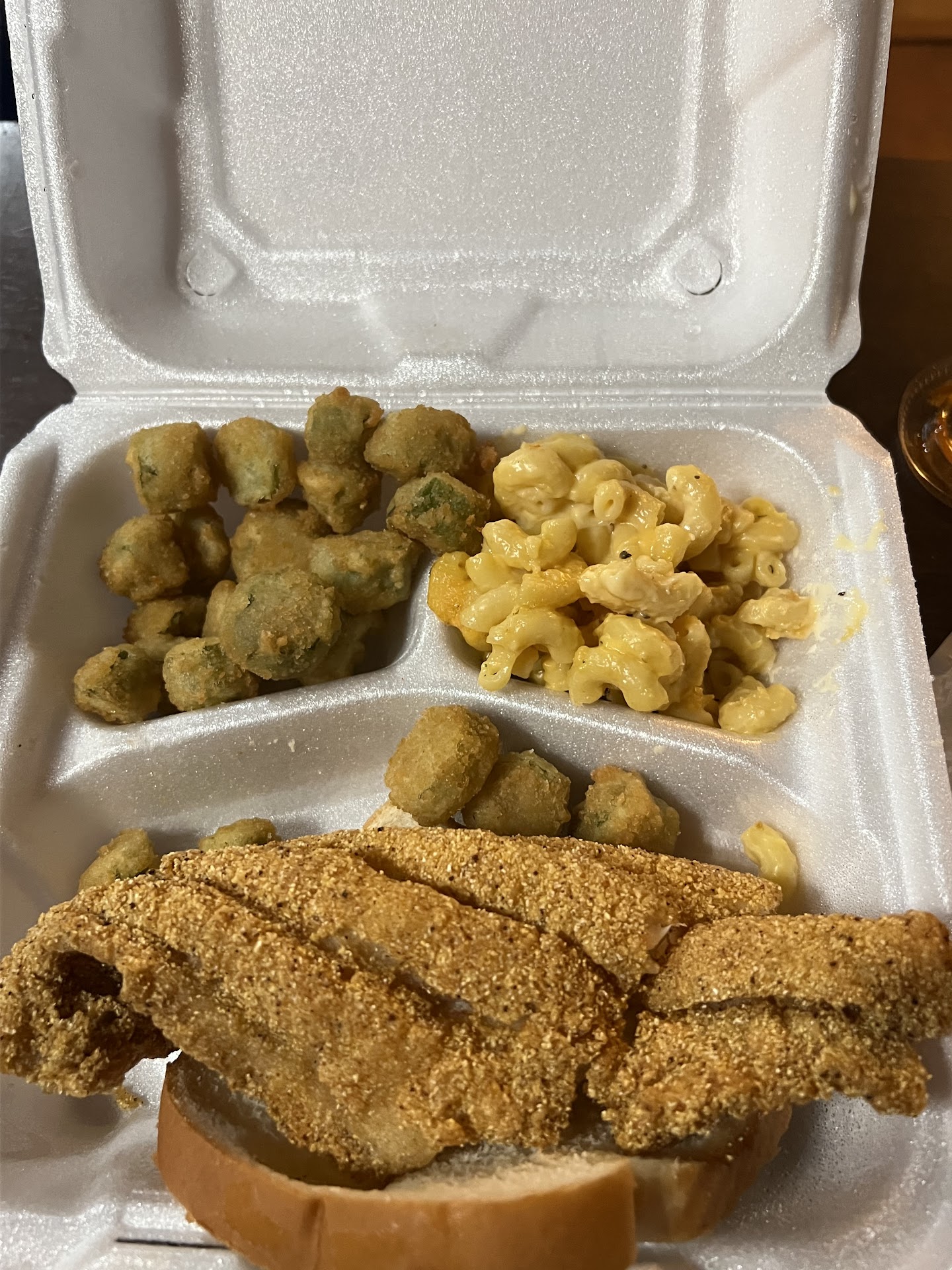 The menu was super interesting. I had the fried catfish. The fish was flakey, not at all overcooked. The batter was a coarse-milled corn meal with excellent seasoning. Perfectly crispy. I asked for collard greens on the side. The greens come with big, beautiful pieces of slow-cooked pork and chunks of onion. I also had the lentils with chicken. This is soul-food so both the chicken and the pork included pieces of skin. To the typical American pallet, this is “gross” but it adds so much to the depth and richness overall.