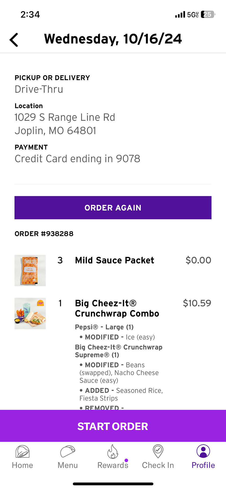 Read moreRecently placed an order for delivery. Doordash did well. They were prompt, didn't waste anytime getting our food to us, and they were friendly. Our issue was the food quality and missing items. Wouldn't complain, except this has been a routine issue with both this location and the location on Main Street. My wife decided to try the chicken strips. When they arrived, they were brown, rubbery, and tiny. Fortunately doordash was willing to reimburse us for that item. But I had also ordered a beefy 5 layer, which was cold upon arrival. And before any blame can be placed on the delivery service, the shredded cheese inside the burrito wasn't even melted, which means the burrito was never hot. Doordash did not reimburse us for this. And in addition, I had ordered the cantina chicken quesadilla combo which comes with the cantina chicken quesadilla, a taco, and a drink. The taco was missing entirely. And Doordash required pics, but we cannot take a picture of something we never received. So we did not receive reimbursement for an item we never received. Again, I wouldn't make a post, but this has been a repeat issue, and I wanted to make sure people were aware of the issues the local Taco Bells have. In the past, the Range Line location was the best one, but they've had a steady decline in the last year or two. At this point, if you want Taco Bell, I'd recommend the location in Webb City over any...