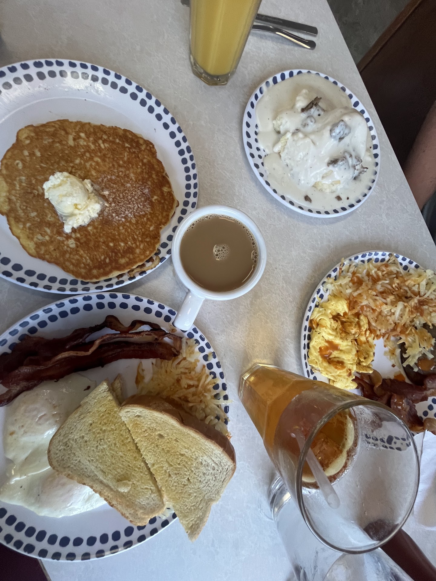 "The food?" you ask...it was SPECTACULAR!! It was high quality and well prepared. I chose to have "the Stapleton" platter with bacon...and not only was it WAY more than I could eat in one setting but, the quality was above your regular restaurant-normal foods. BTW...The bacon is to die for, the pancakes are super fluffy, the biscuits are HUGE and fluffy (although I didn't have one as I chose the pancakes)...and their coffee is VERY good (& I'm a coffee-snob!)