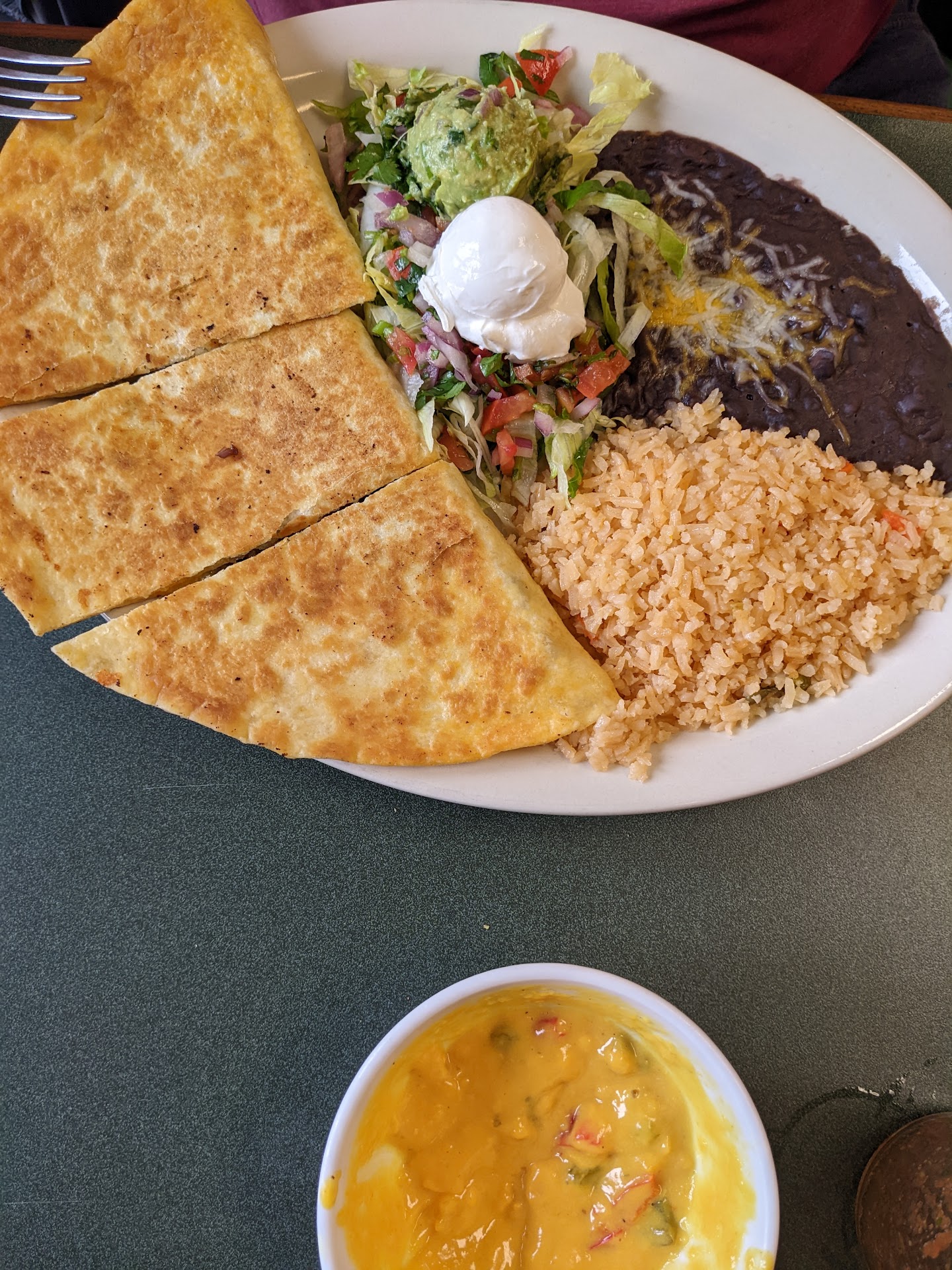 What the queso lacked they made up for with the food. We ordered the steak ranchero and a steak quesadilla. The steak was perfectly marinated and tender and juicy. Everything on the plate had just the right amount of flavor and made the mouth happy...