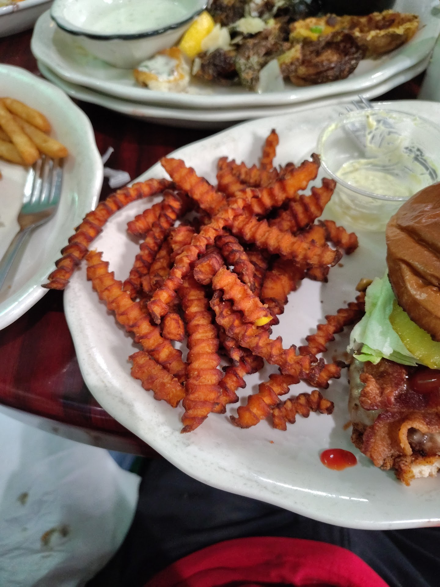 Read moreThis sports bar is located right in the heart of Joshua on the square. It has an open area very clean and is a typical sports bar that has outdoor seating. If I were just judging the restaurant on the appearance and the uniqueness I would give it five stars. But you can't say everything's pricey nowadays because they are pricey. But we ate a cheeseburger and chicken fried chicken plate both drinking Waters no dessert or advertisers and then it'll cost less $41.32. The food there had a good appearance but wasn't very tasty. Staff members are friendly but need to be upfront about up charges. We ordered french fries and onion rings and the waitress said there's no up charge. When we got our bill they charged us $2 a person for adding sweet potato fries and onion rings to have order. Nothing was said until I went to check out and complain. The waitress had $2 removed off our bill. On the upside they do have a pizza oven and make pizzas right on the spot. I had plenty of TVs to watch and the restaurant was very...