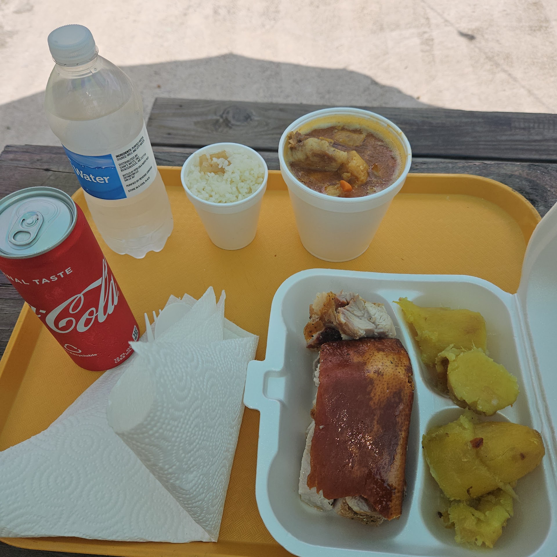 Read morea roadside cafeteria offering lunch outdoors, also traditional roast pork, rice with pigeon peas and others, cold beers/ lechonera y comidas como en guavate ,...