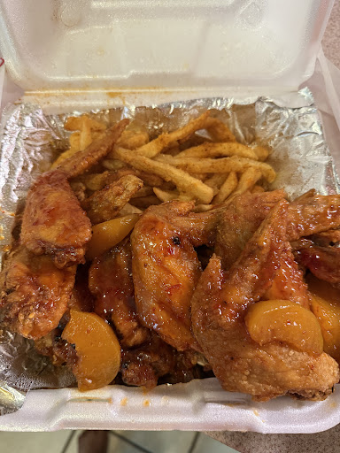 Read moreCalled in an order for take out. First time trying the food. Ordered the 12 piece wings half Jamaican Jerk and half peach habanero (comes with side of fries) with an additional side of rice and gravy. Person in the phone was pleasant to talk to even if the connection wasn’t great (probably my phone). Told 35-40 mins. Got to the store at 35 mins and the place looked great! Super clean and put together.