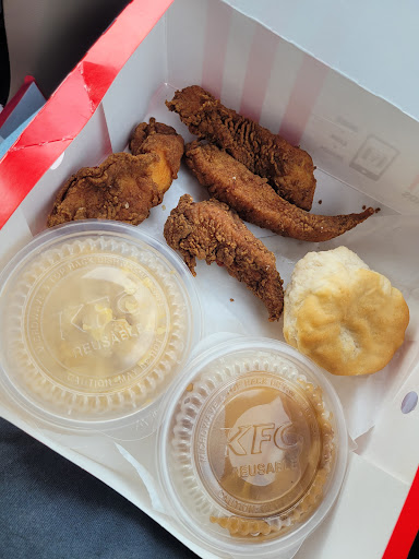 I never review any place. I deal with whatever happens, good or bad. This time was an exceptional experience. First, upon entering, I went to wash my hands. No soap in dispenser, toilet was beyond gross with trash, mostly toilet paper and newspapers, since there was no paper towels what so ever, covering the floor. Asked my wife to please look in the female bathroom and guard the door so I could try to wash up in there. Was able to, but same thing, toilet was destroyed with trash covering the floor. Same thing no paper towels, just toilet paper covering the floor. Funny how the sign going out the doors and on the hallway said workers must wash hands before returning to work. Just had to laugh cause it was no way they were using those two rooms and wash before returning to work. Ordered our food. Went to get drinks. The Pepsi and root bear tabs didnāt have anything other than syrup spraying out. And I mean spraying out. Hand was covered and sticky. So again I had to have the wife guard the door to women's restroom while I washed my hands again. Walked to seating area to wait for our food. Wanted to sit in the bench area. Could not though because there was chicken bones spread out on the table. Not on a plate or a food box, but just laying on the table. Also not just a bone or 2, but lots of bones, at least 8 whole pieces of chicken. When food was ready, I asked for napkins since none of the dispensers had paper towels. Was told there was none to give. I said are you kidding, you have none, was told yep none. Not sorry or anything, just nope. Took the food to the table and then went to my vehicle to get some Kleenex tissue to use while we ate at gross dining area. Next, the food, Wife ordered a 2 piece of original recipe. Got 1 original and 1 spicy. Biscuit was actually flat and still raw dough. Ive just assumed they were supplied to the restaurant with just needing warming. But canāt have been since it was actually raw dough. I ordered a 3 piece strips. The strips had to have been under the warmer since lunch time. We ate at 7 pm. So, so dry and rubbery at the same time. Could only eat less than 1 piece. It was like chewing a pice of meat tasting gum. Mashed potatoes were good. Really enjoyed that with my biscuit. (mine was actually baked and risen). I live in Manhattan and occasionally come to the JC area to see daughter and grandkids. Will never, ever eat at this KFC location again and will restate my experience to whom ever who is intending on eating at that location. Was grossed out from the time we went into the lobby until we left the establishment. Oh yeah, lastly while leaving building an employee who was coming back into the building from delivering someoneās food to their car bumped into my wife and never said anything. I said excuse me to her, and she never looked back. Just totally...