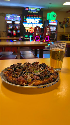 When we ordered a beer the server rolled their eyes at us and sighed. Only emotion we ever saw. This was also our first time here, so we didn't know that they don't serve your pizza or your drinks. They also never told us our orders were ready, or even to look for it. We'd been sitting there for 20 minutes waiting and talking and watching a game. We finally look over and all of our stuff is out, and had been out. The entire staff is again staring at us like alien body-snatchers. We ate some pizza but felt incredibly uncomfortable so asked for a to-go box. They told us they'd have to charge us. For a box. For our own pizza.