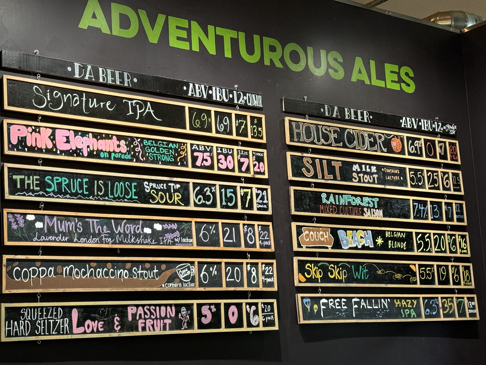 Local beer always tastes a little bit fresher. This place has ten beers on tap, ranging from IPAs and IPLs to raspberry bretts and sours. Everyone who works here gives service with a smile along with great advice when asked. The beer is exactly what you want it to be, the location has table seating for 40-50 people and some lounge seating, and the decor is extremely environment-forward with plants and 'living' art with plants in a jar. Combined with the sexy wood wall paneling and stools, it works.