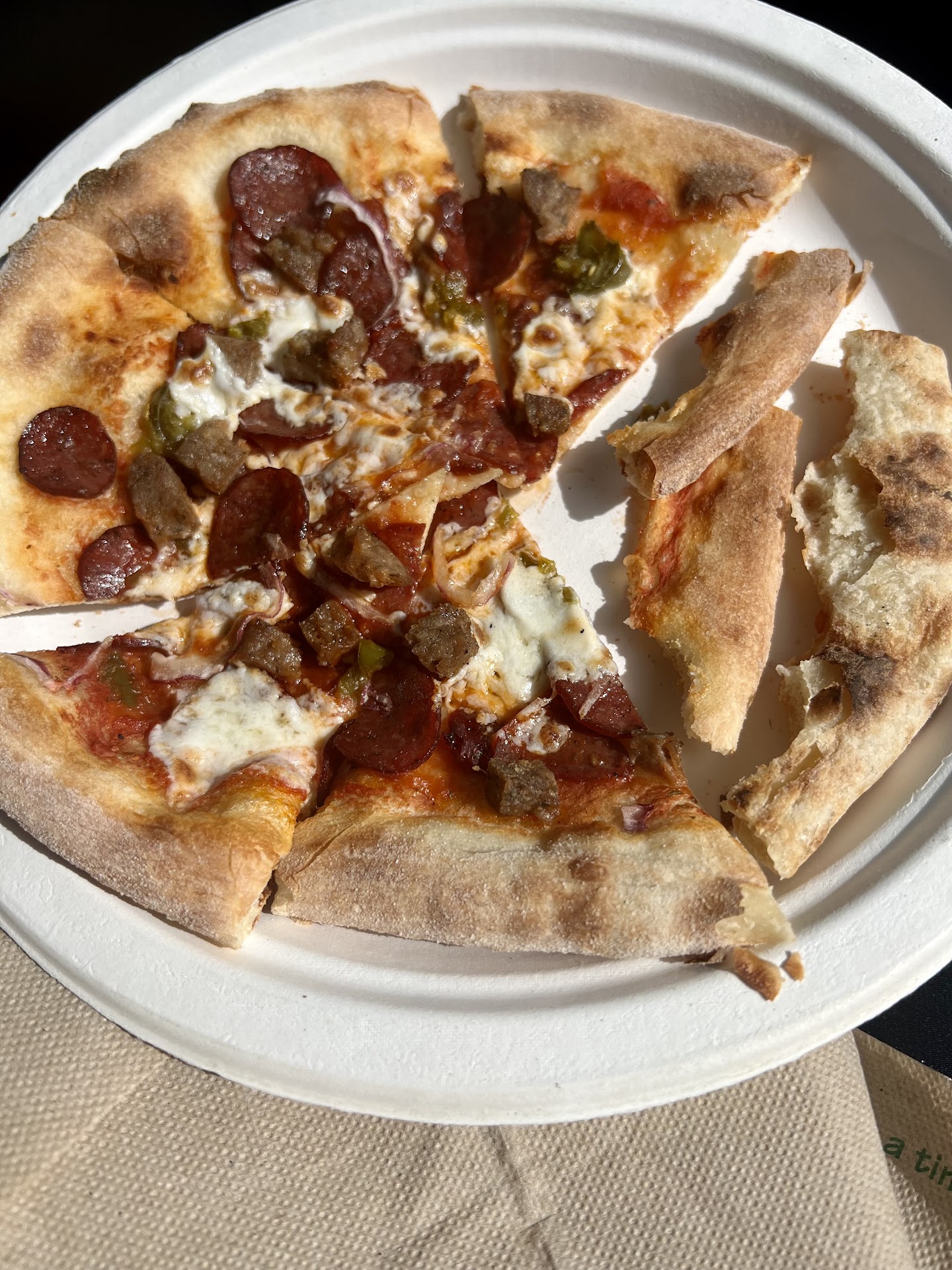 Read moreI’m being generous and giving them 3 stars. Pizza is ok. Pricing is completely unreasonable. $36 for two pizzas (one just cheese and one reindeer). Each served on a paper 10” plate out of a small food truck. They are basically taking advantage of being located next to Alaska brewing company. My advice is to stick to the Devils Hideaway food truck if you are hungry. At least their food will fill you up. My 6 year old ate an entire Forno Rosso pizza by herself and was still hungry. I had to go order her some fries. Definitely not worth the price. Pizza very thin with thick crust. Not filling...