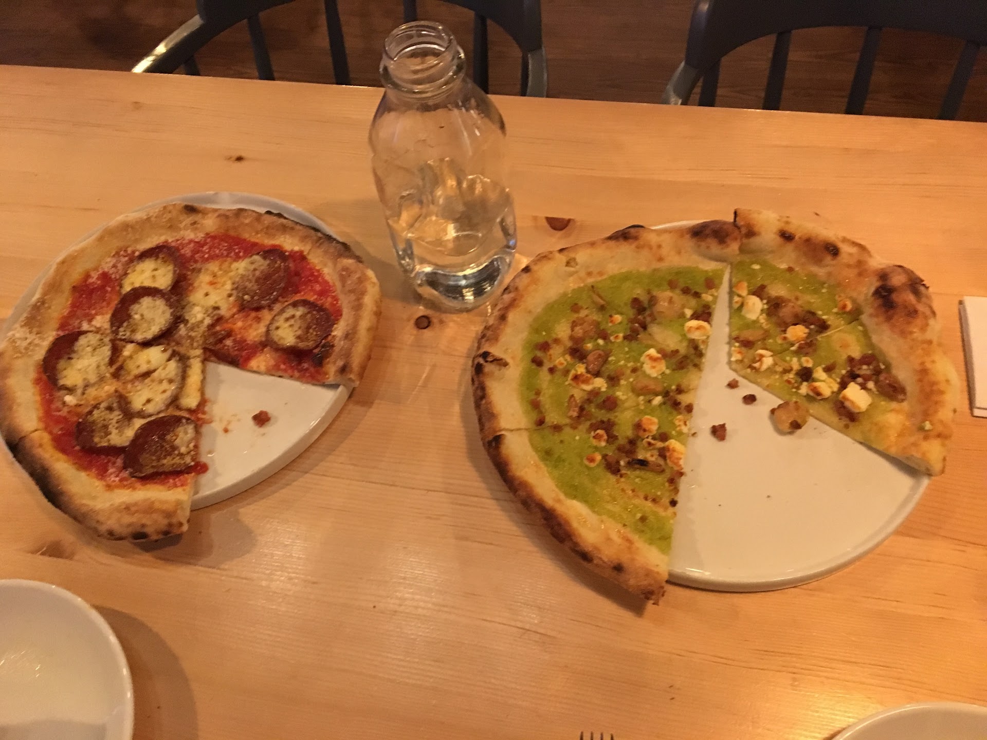 Read moreMy husband and I were so excited to try this place. We knew what we were going to order when we arrived (their menu is posted online), only to find out that their menu was completely different, which was really frustrating. It's tucked back and kind of hard to find but I enjoyed that aspect. The atmosphere is industrial and the seating is comfortable. We started off with the baked thunderdome and it was pretty good. All of their dough is sourdough which I love! My husband ordered the New York Pizza with added bacon (bacon was never added but we were charged for it). I ordered the leaky goat pizza, because I wanted to venture a little outside of my comfort zone. I did not care for my pizza at all, I think the leaks were just a bad choice on my part. However the toppings on both mine and my husband's pizza were really sparse, especially the cheese. Overall I didn't care too much for this restaurant. It's very trendy and hip and there is a lot unique flavors (in my opinion none that I really care to try like fennel pollen, honey-on pizza) so in turn the prices are higher. If you are a tourist or someone who's looking for a "unique experience," or "trendy" food this is your restaurant. However if you are a local just looking for a good meal I would not bother going here. While their sourdough is excellent I feel like it's definitely geared toward the hipper...