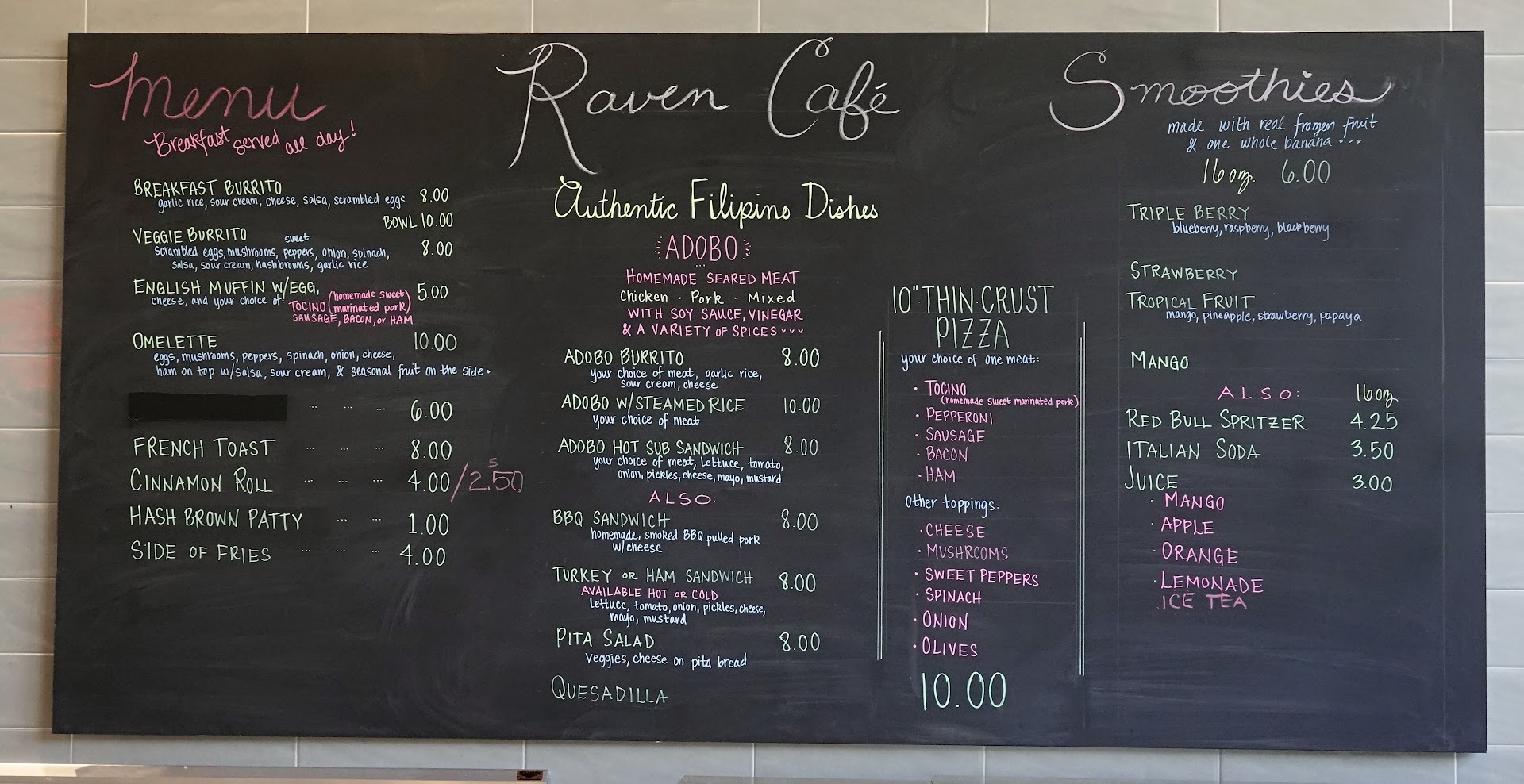 Read moreThe owners are amazing and very accommodating. They have a small menu but everything is great. Their adobo burritos (either pork or chicken) are the standout on the menu, and make a quick and tasty lunch. Small restaurant but very clean and bright inside. Coffee and smoothies are...
