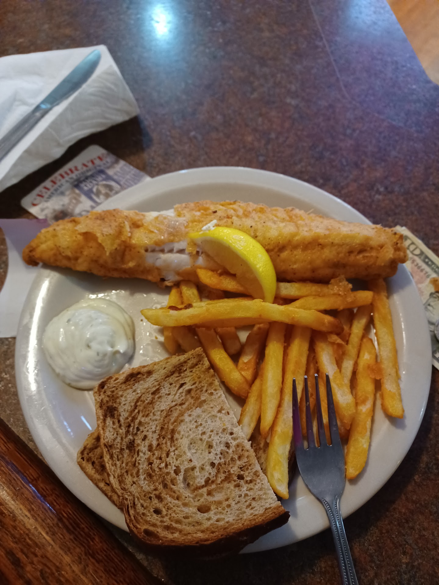 Read moreMeet my brother for Friday night fish. We both had baked cod. He said his was very good. Mine was a slight bit over done and luke warm. (More dry than moist.) The clarified butter was a bit salty and could have been warmer. The potato pancakes were very good. They were warm not too hot and had a very good taste. The side salad was very good. (The salad had more than just lettuce and was very fresh.) The cauliflower appetizer was served hot. Lisa, the bar tender, was pleasant and did a good job of tending to all of the patrons. Brianna, the waitress was pleasant and attended the tables well. There are plenty of large screens available for watching sports or whatever. The place...