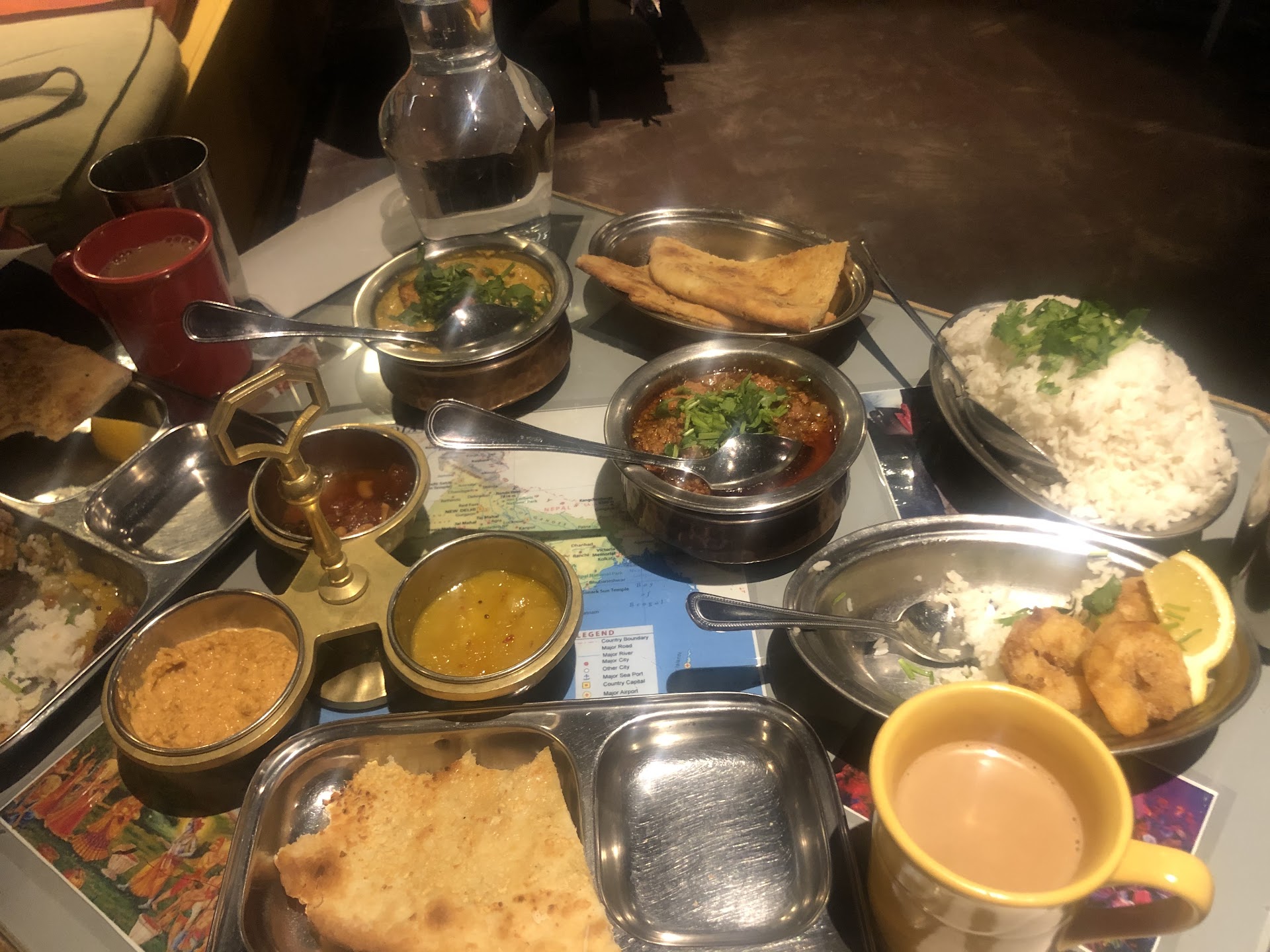 The jhinga was delicious and served over rice which letâs be honest, I can never get enough rice. We ordered the mango, tomato, and roasted peanut and garlic chutneys. I was surprised that the tomato one ended up being quite sweet but all were delicious and the peanut one packed a punch! I will say the naan is nothing like any naan Iâve ever had in a sort of comical way- itâs very thick and dense, nothing very airy as naan usually is. Probably closer to a paratha really but good nonetheless. The lamb curry I recall being pretty good but honestly the kheema stole the show. It was our servers recommendation and she did not steer us wrong- such amazing flavors and the sort of dish that feels like it must have taken some effort and love to make! The chai- also pretty damn good.