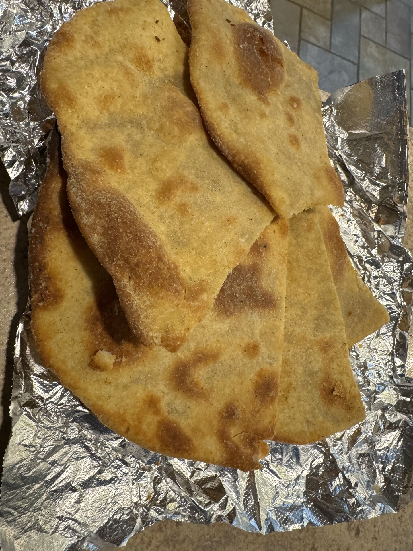 The naanâpresented as butter and garlic variantsâwas not tandoor-baked, but rather cooked on a flat surface or pan, missing the distinct blistered texture and crispness that a proper tandoor imparts. The dough lacked fermentation and maturity; its aroma and bite suggested either rushed preparation or flour quality issues. If not tandoor-based, it may be more appropriate to describe this as âtawa naanâ to manage expectations.