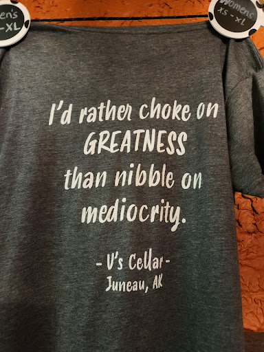 Read moreA friend generously treated our group to dinner at Vâs Cellar last night, and we were all excitedâespecially after spotting the T-shirt in the merch corner that boldly proclaims, âIâd rather choke on GREATNESS than nibble on mediocrity.â Unfortunately, our meal fell short of that promise.