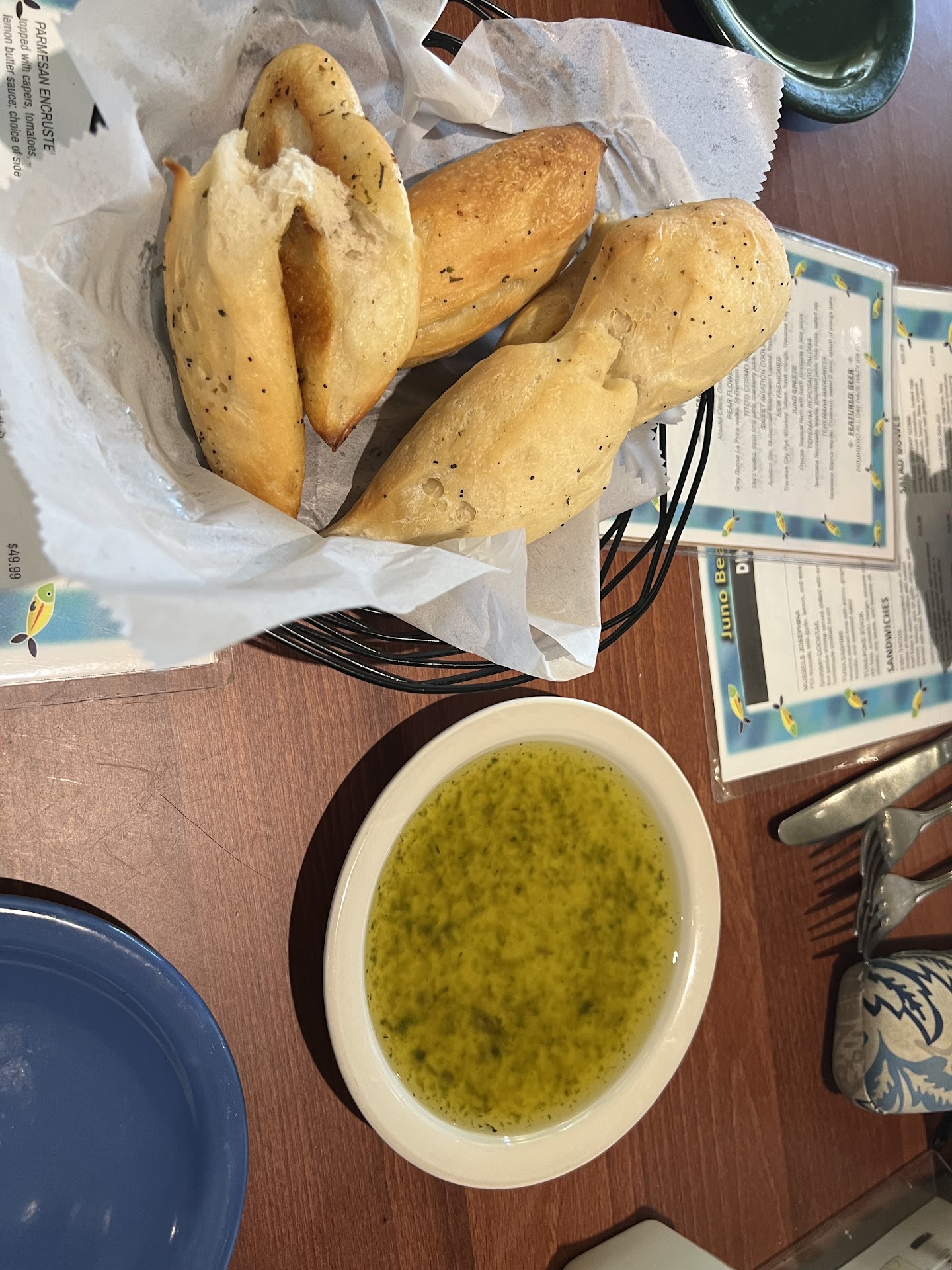 Read moreMy husband and I went to dinner there on Friday night (2/16) for my birthday. We don't get out much being parents of two young kids with another one on the way, so when we do go out, we have high expectations and like to take our time. We were not disappointed! I can't remember our server's name, but he was a tall and slim gentleman with short dark hair. We told him we weren't in any rush, and he was happy to accommodate us. We had a drink and ordered the muscles and conch fritters to start, and we were blown away by how delicious they were! My husband is pretty picky about food (especially seafood), and when the muscles arrived he was a bit disappointed because they were on the smaller side. However, once we had our first bite we couldn't stop eating them! We were both pleasantly surprised, and in agreement that they were the BEST muscles we have EVER had! We've had muscles at a lot of different places, but these were nothing short of amazing. They were so tender, and the sauce was so flavorful! The conch fritters were equally as amazing too! They were crispy on the outside, soft on the inside, there were no overly chewy pieces, and the sauce it comes with paired nicely with a little kick to it. We almost ordered another bowl of muscles to eat for dinner because of how delicious they were, but decided to try some other items. My husband ordered the fried grouper, and I had the "coco-mac" (coconut & macadamia nut crusted) Mahi Mahi. Both were cooked perfectly and had so much flavor! Everything from start to finish was perfect. Even the salads that came with our meals were delicious! My husband got the ceasar salad, I got the house salad, and they were very fresh and still cold (often times a small salad comes out warm and soggy). We had plenty of time to enjoy each course too, which makes a huge difference to us. Again, we don't get out much, so we like to take our time when we go out. All too often we feel rushed, have dinner served when we are only halfway done with appetizers, getting the bill before we've finished eating, etc. So it was very nice to feel welcome to take as long as we wanted, and we finished each course before the next course was served. My husband made sure to thank our server for letting us take our time with a generous tip đ We can't wait to come back and get those delicious...