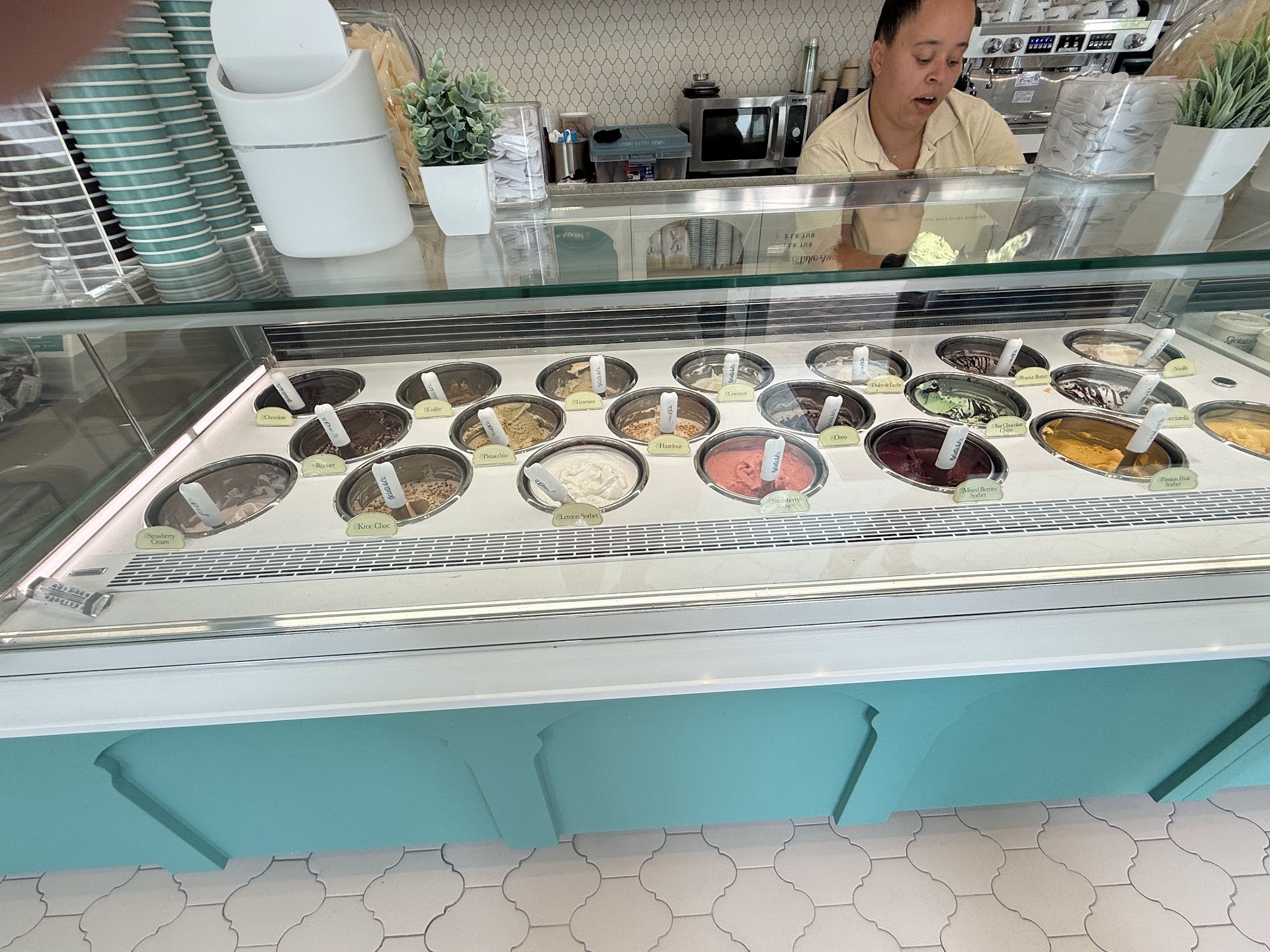 Read moreWe are long-time fans of Mattyâs, but this place is much more elegant and better for sitting. Choices here are mostly traditional Italian flavors. Excellent WiFi. Clean bathrooms. My mom rated the mango sorbet here as âmuch betterâ than others sheâs had. Strawberry sorbet was great. Coconut was very smooth and sweet (not as chewy as some âcraft gelatoâ versions). Vanilla was perfect in texture but maybe didnât need to have quite as much sugar (they do serve espresso and other coffee drinks here and maybe the true Italian gelato is on the sweet side because you'll have it with bitter coffee). Service was warm and friendly, though we stumbled in on their literal Day 1. Maybe theyâll get grumpy over time đ