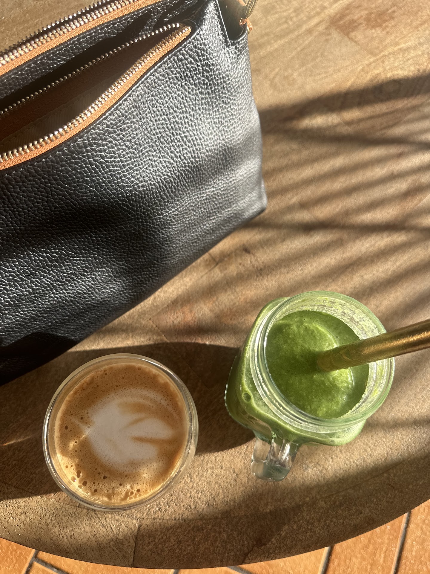 for my first visit in I opted for a classic cap (whole milk ofc) and a āgreen goodnessā smoothie