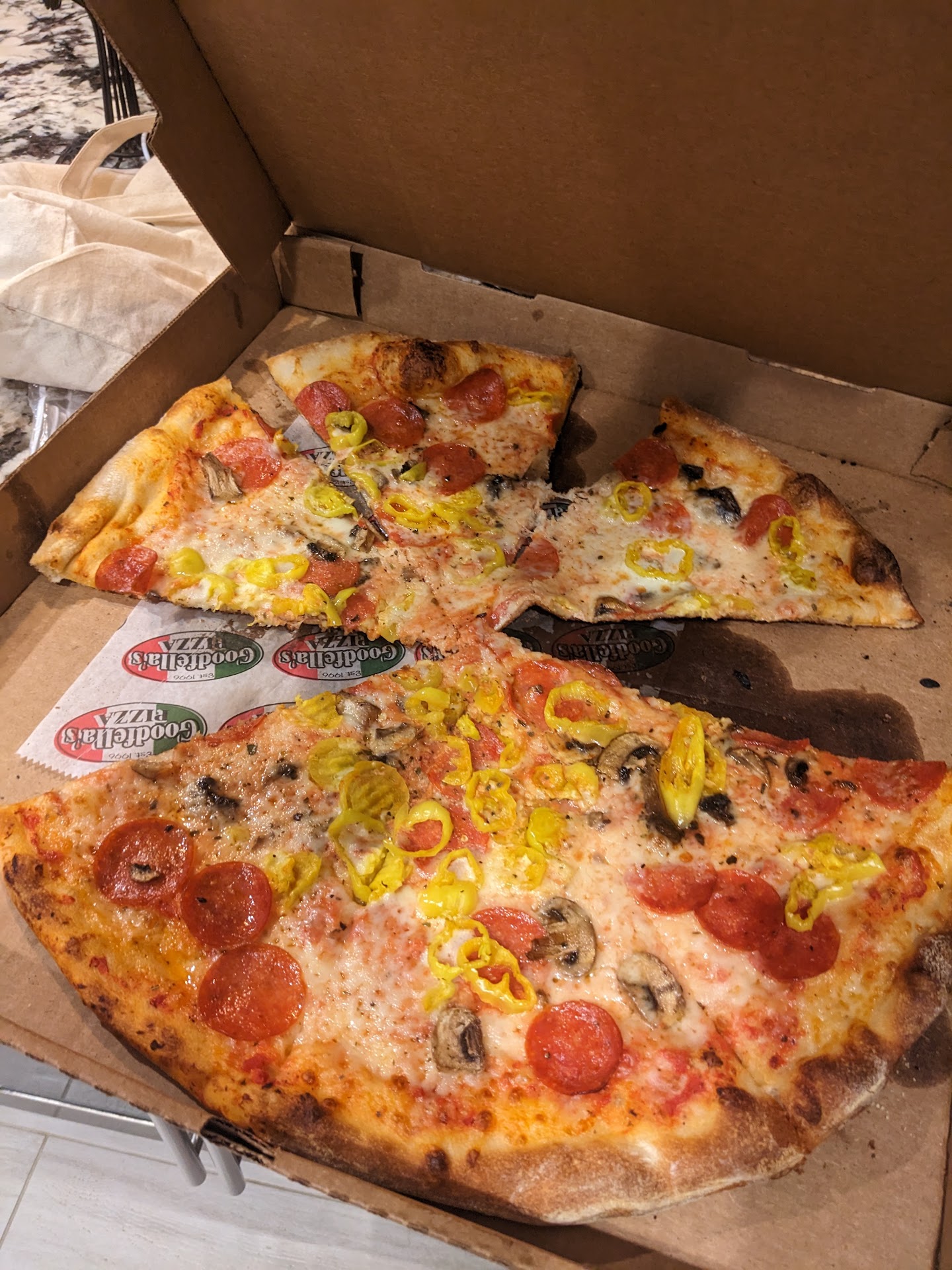 I'm not mad about there not being a lot of banana peppers on there. But the pepperoni and mushrooms - you get way more toppings at Domino's 🙄