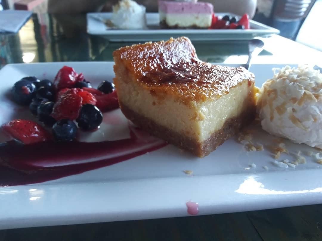 Though we were stuffed, we succumbed to the allure of their dessert menu. The White Chocolate Coconut Creme Brulee Cheesecake is out of this world and the Dark Chocolate Nut Mash is really good too. They come with sides of fresh mixed berries and fresh whipped cream and toasted coconut. Wow.