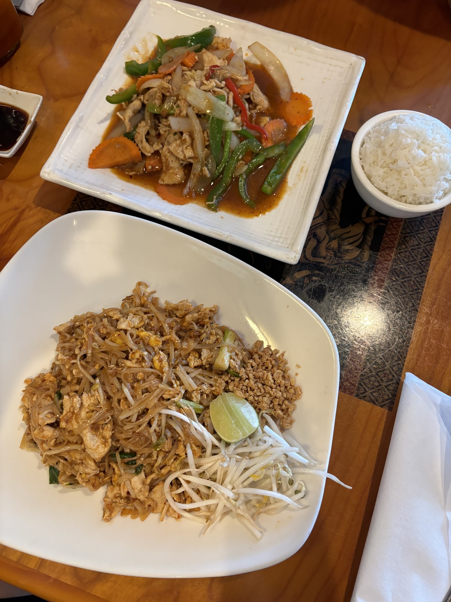 It’s almost a disappointment to have found this incredible restaurant because I will forever be letdown by thai at every other restaurant. THIS is the gold standard. Let me explain. Ok - first of all kind of a sneaky hole in the wall place with a surprisingly pleasant and classy vibe. Long bar with TVs, but no one sits at it, so a classy crowd here. The service is excellent and each dish is prepared to perfection. Coming out immediately when it is off the wok. So sure, you might wait a minute or two between each dish coming out but trust me, you wouldn’t want it any other way. Look at the photos I’ve provided! The food it hot, the noodles are clearly fresh noodles sourced locally and soft chewy perfection. The ingredient proportions perfect. The portions generous yet appropriate. The fish is as fresh as can be (my husband is obsessed with the pineapple curry snapper). The pad thai is mind blowing - you can taste the palm sugar - ugh, so good!! The pad see ew is the best we have ever had. The amount of protein they provide in each dish is so generous, I’m almost surprised they can turn a profit — but very grateful too! To explain how good this place is I will say this… we went one night with the kids and it was SO good we got a babysitter to go the next night without the kids and eat it all over again. To our dismay it ended up being closed on Tuesdays so we had to go elsewhere and we got ANOTHER babysitter to come back her later that week when it was open. I am absolutely shocked that locals don’t know about this restaurant when I tell them. I think the name doesn’t explain enough about who they are. So…. In summary… are photos below… drool…. Then get in your car and try this place out. I’ll be sad when it’s slammed busy because everyone discovered it, but also happy because they deserve the recognition.