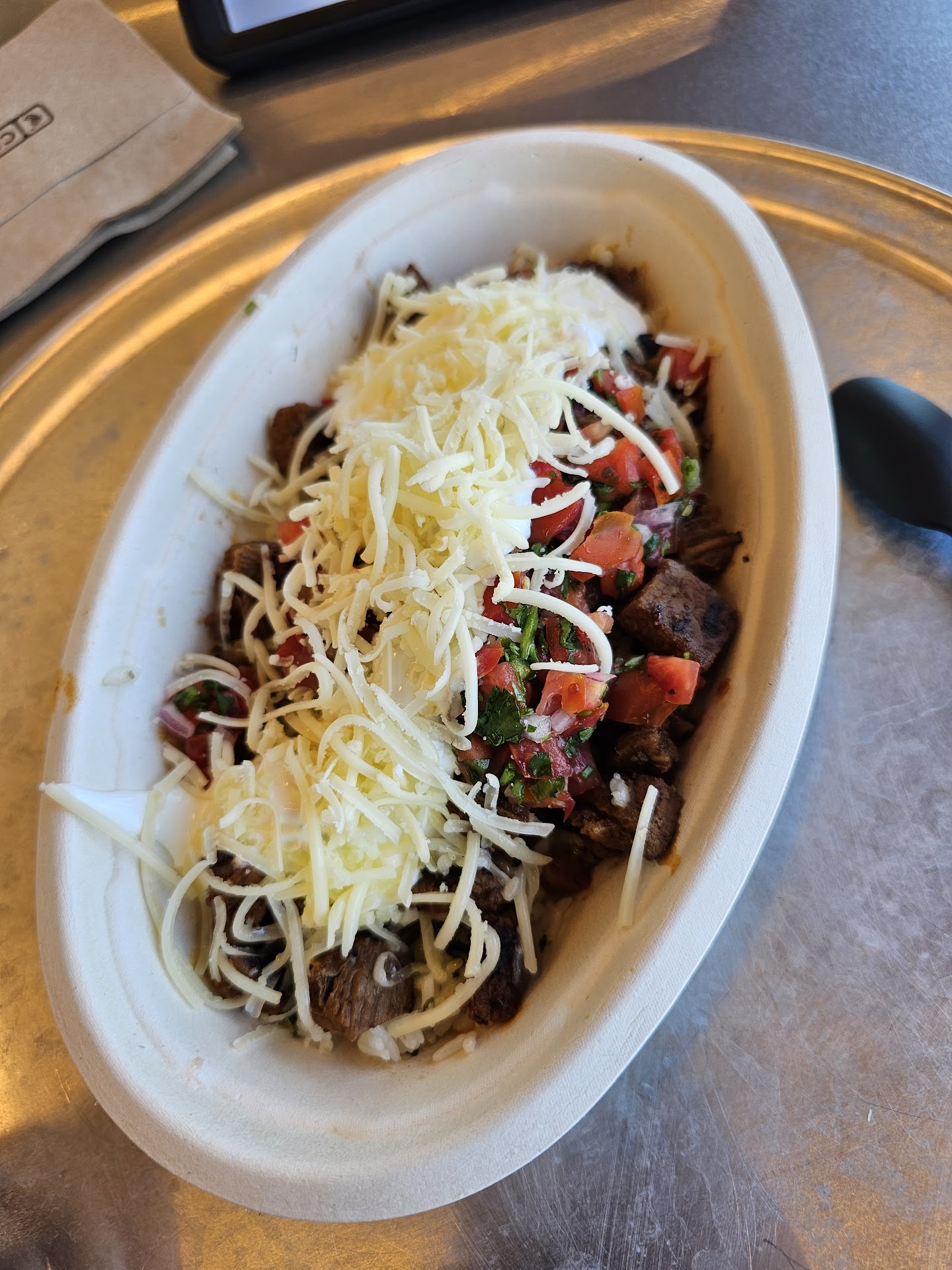 Read moreI went here during the day and it was good but when I came in the evening they were out of everything even though there’s two hours till close. It’s also not busy, but really messy in the lobby and workers aren’t very friendly. And let’s get into it, idk who the night shift cook is but this chicken is over salty like please 😭on the flip side the guacamole was made to perfection and the workers were so disorganized I guess they didn’t even charge me for it. Anyways, I won’t be back at night. Kinda sucks because I was hoping this could be my new spot since it’s on the way home from work but I get...