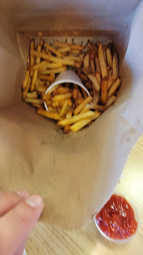 It's a good burger cooked well done. Oozing cheese topped with bacon or many other condiments and toppings from lettuce and tomatoes to mushrooms and pickles. You can add ketchup and mustard or even add A1 sauce and mayo. Not like a 100 things to choose from but definitely a good variety of items you would and could put on an everyday burger. The potatoes aka fries were plentiful for just a single order, also they stated they were from Illinois and I think that's a cool touch for freshness sake. I don't really care where the fries are from but it is definitely cool to have that information but I'd rather know where the meat came from and what was the cows name but kidding aside the restaurant was clean and only a few customers sitting inside but they also provide outdoor seating if that's your cup of tea. The soda fountain is one of those mixed variety dispenser where you touch what flavor you want and it mixes it up for you aka cherry coke or grape soda for example but something I do that is useful in my humble opinion is run water through it 1st then poor your drink into you cup so you don't get that residue from the last person's drink mix. All in all its no in and out but I'm sure people will beg to differ and compare the two establishments. In n out is a staple of californians burger and shouldn't be compared. This burger is a bit on the pricy side and I will admit you get what you pay for. Just know the little cheeseburger is a single patty the normal burgers come 2 patties standard. I recommend ordering a bacon cheeseburger with lettuce, x1 tomato, pickles, ketchup, lite mayo and mustard. It will come out a decent size and the flavors meld well with one an other. My son got his burger plain and the meat isn't plain and boring it does have a bit of...