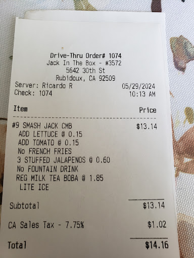 Read moreWe Frequent frequent this establishment and it is unbeatable for any other Jack-in-the-Box you can put against it was 13 years ago I went every night to this Jack-in-the-Box through the drive-through and I ordered something that had them in order before what it was was a Neapolitan shake which has strawberry vanilla and chocolate and I explained how to make it and it was made perfect also handthree perfect cherries on top when I first ask them to make it they didn’t know if they could to make it Then the manager came on a new mount remember her name but I see you’re there I didn’t even know she said she could make it and she did and it was perfect it is now been seven years and I go there all the time and I see the same manager and he none she doesn’t make it all the time anymore but she smiles just the same I’ve never seen her in a bad moon and neither of us in the employees area they are all pretty good people workers and they’re nice to the homeless they are nice to the poor in to the rich they do not or they do not act Any different if you come in there homeless in filthy or Rich and Into Cash and in a tux they treat you the same way I had a homeless campaign some years ago and they alone all the homeless that were there with me throughout the day to receive free sodas on those days it was only for a 24 hour. We think you Jack-in-the-Box and we think all your boys for everything that you did then and...