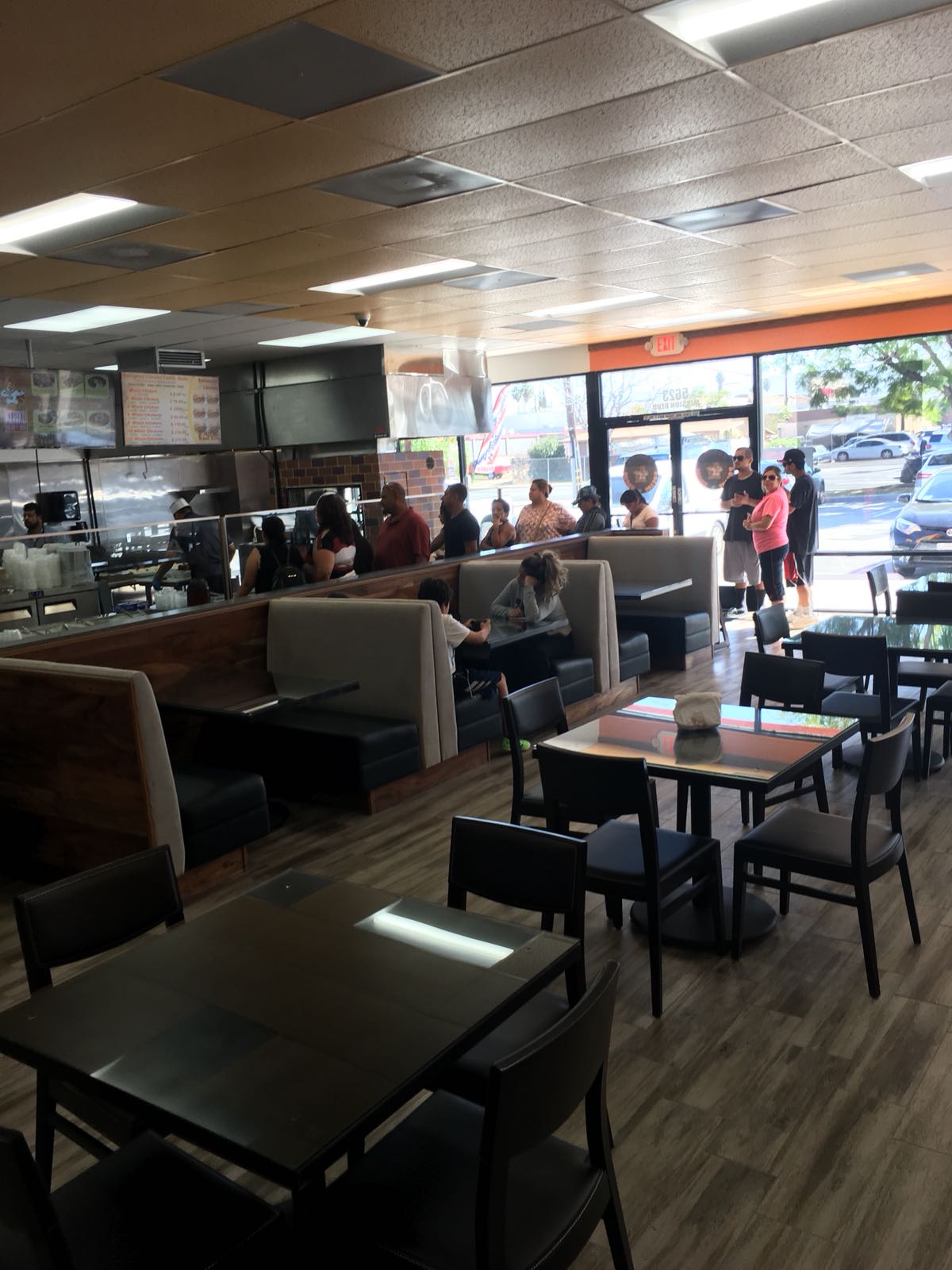 So we go to this place for the very first time yesterday Sunday April 28th and was very disappointed. The restaurant was very dirty, chairs were all displaced, trash on the floor.....cup, napkins, used utensils. The tables had not been wiped down, some tables still had previous customers trash. Employees looked like they hated working there........I dont blame them! The food was awful, the chickens were the size of a cornish hen, they were burnt black on the outside and extremely dry on the inside. They were understaffed, there were only three employees and a line of people waiting impatiently. Everyone was wearing gloves, but they were touching everything. They should have each person assigned to handle the meat, another on sides and tortillas and another prepping hand held items like the burritos. The girl that helped us looked sour, no smile at all. She was grabbing the chicken, then she would stick her greasy chicken hands in the lettuce and tomatoes and cucumbers etc.......I was grossed out by the time I received my greasy plastic box. Then I had to clean a table myself to sit down, tables and chairs were very greasy. Because the chairs are of a leather like material you can see the grease shine on them. My Husband ordered the burrito and it literally looked and tasted as though someone had threw up in the burrito and wrapped it up. I was disgusted! There was a homeless lady asking for food, the food was so bad, I wouldn't even give it to her, it went straight in the trash. I hope management reads this and makes an effort to properly train their employees on food prep and presentation oh and also hygiene. Will never go back. Went home and...