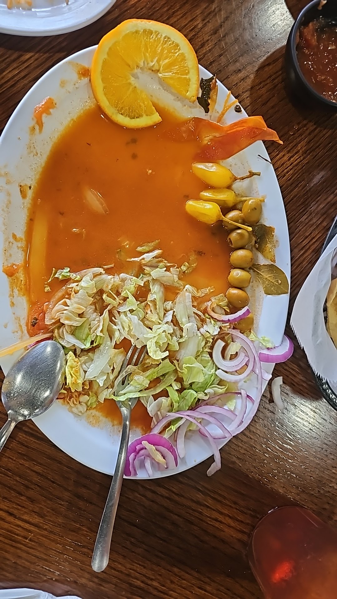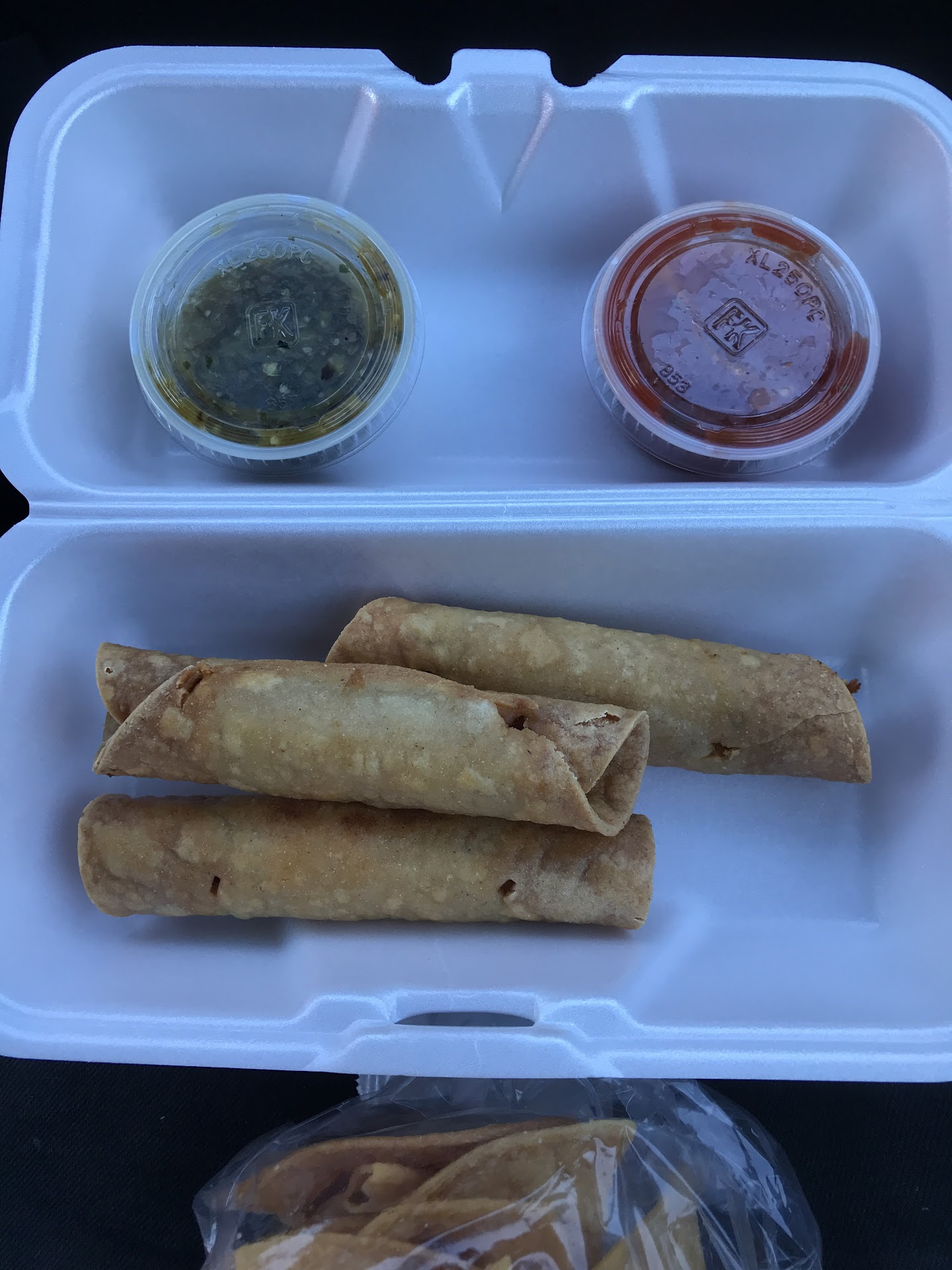 Read moreNot easy to operate an eatery,and i love mexican style,however this was not my favorite,what u see in the cooler,empty plastic bottles came in two clear plastic bags,filled up in the kitchen,placed in cooler and ice,,the food..with coctail olives,some leafs,tomatoes skin hanging out,hot plate of shrimps with cold lettuce+tomato+sliced red onions..+coctail (green) olives..rice look like rice,have no idea whats nex to it,suppose..black beans??.i am truly sorry..put some love in the plate..get some coooking ideas..knowing operation is expensive and costly..but gotta do it right,without cutting corners..good...