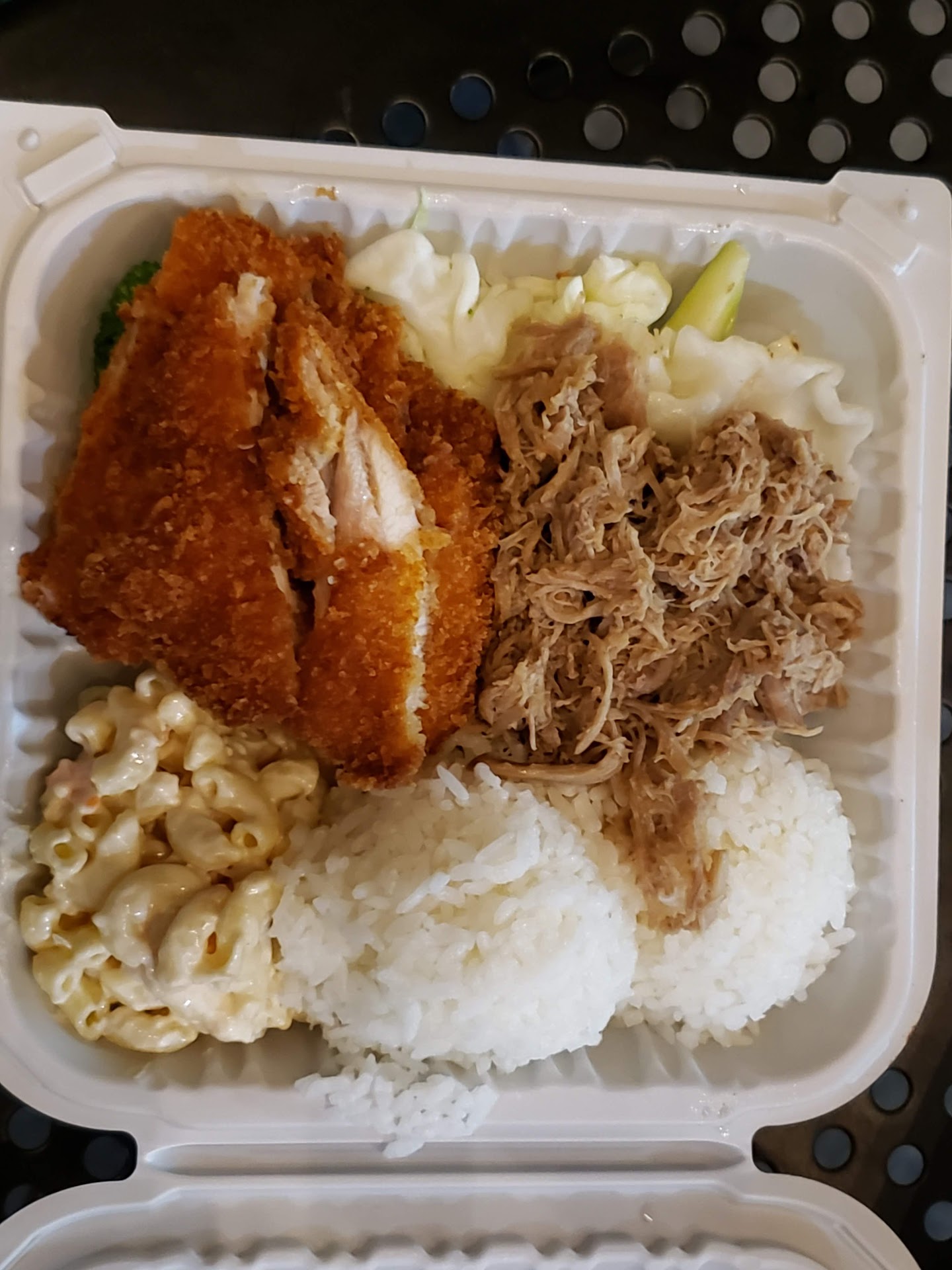 Read moreMy wife and I decided to try this place for dinner last night. When we arrived around 9ish PM. The restaurant is very clean, well-lit with nice decorations. The staff were attentive to customers. My wife ordered BBQ chicken and Beef Combo and I ordered Kalua Combo with Chicken Katsu which is basically shredded pork and bearded chicken. The food arrived shortly. Everything is served in disposable containers even if you are eating in the restaurant which I think is a turn-off! The food was generally good. Not healthy but good! Kalua had a really good smokey taste but was too salty. The BBQ Chicken was just great and juicy. Both combos came with three scoops of steamed rice, macaroni salad and vegetables. There is a water fountain in front of the restaurant which makes a great spot to relax and eat. Overall, it was a good experience if you want to try...