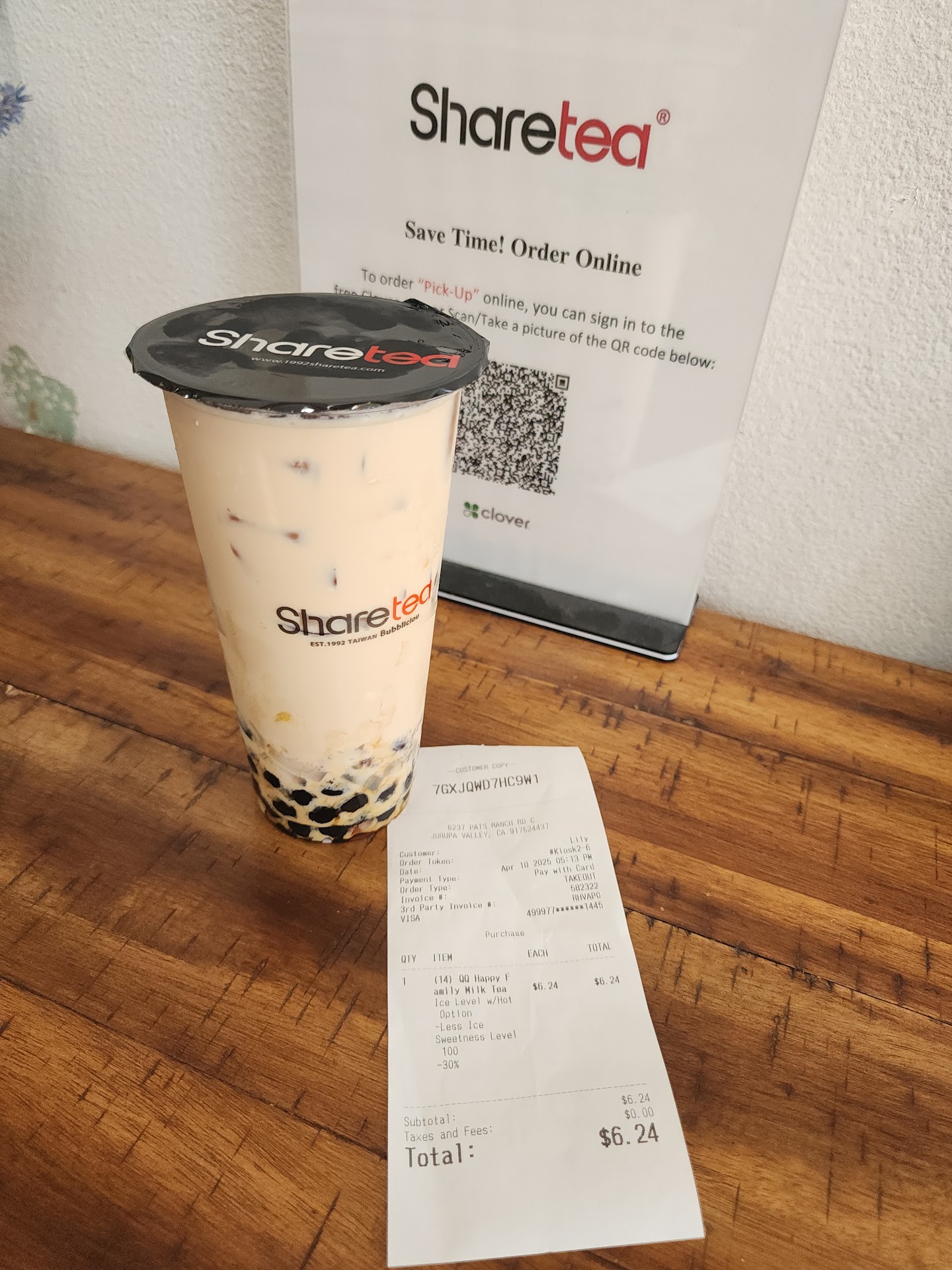 Ā Ā Ā Read moreI was very excited we were getting a boba place on our side of town, vs having to drive few more minutes to Eastvale. (Ten Ren) unfortunately I was very disappointed. Wait was long, there were alot of employees, given its a new business, I can understand how it looked unorganized. This location only offers drinks, no appetizer, thats a bummer. I don't see myself returning. I ordered thai tea, honestly flavor was not great. This is just my true honest opinion. Hope you have a...