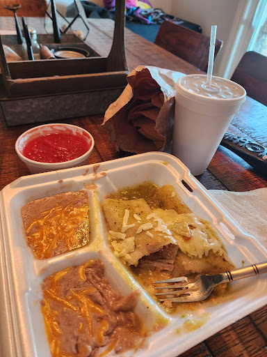 Read moreThis place has been highly recommended by many of my clients and close friends that live in the Justin area. So I decided to finally give it a shot as I LOVE MEXICAN FOOD! I'll start with saying I tried to call the restaurant to place a togo order but didn't get an answer so just decided to place it in person. When I arrived it was so busy that I had to park around the block an walk a ways to get to it. When I went in it took some time for someone to greet me and take my order. Which I understand completely as they were pretty busy! 😍 Placed my order waiting about 10-15mins. Got my order (chicken verdea enchiladas and 2sides of beans) took it home an went to enjoy it thinking these are going to be great and spicy. Made with tomatillo sauce mmm okay... take a bite and was sadly disappointed. I expecting more kick but instead it was sweet. The beans were alright. I saw chips an salsa an thought okay maybe that will have some kick and it did slightly but it was very watery. As for the large dr togo I got a small cup. No one said anything about cup sizes so guess that's normal?