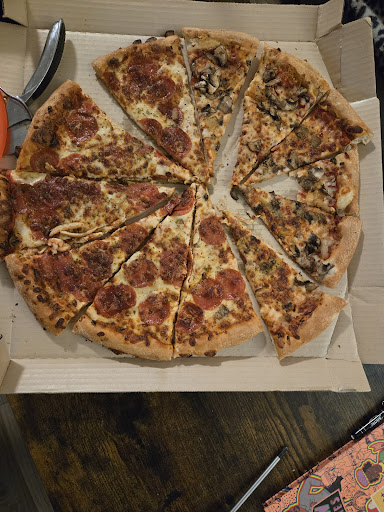 I've ordered from here twice - one delivery order and one carry-out. The delivery order experience was fantastic. My driver got my order to me quickly (tip your drivers!), my food was hot, fresh and correct. A very pleasant first experience that I made sure to compliment them on. I would most definitely recommend ordering delivery from this location based on that experience. The second time, however, was a bit of a disappointment. We ordered a half pepperoni, half mushroom, onion and garlic Big New Yorker pizza and a dessert cookie for carryout on a Sunday evening. Arrived 5 mins earlier than the pick-up time I was given, but still waited between 15-20 minutes for our order. There were a whole 3 employees in the store that avoided eye contact and helping you at all, and we sat and watched as at least half a dozen delivery orders were sent out as we waited for our late order. First we were told they were out of cookies and gave us bread sticks instead without being given the option for something else. Then, when we finally got out order, the cookie was there too? I was missing the garlic topping on the pizza, which was far from cut in half. More like 1/3 mushrooms garlic and onion and 2/3 pepperoni, leaving the veggie person to fill up on the bread sticks.So those came in handy, at least. Our order was hot and fresh, though. But not quite right with missing the garlic, which tops off the taste. I'd be hesitant to order carry-out from here again, but would probably give it one...