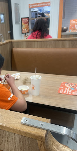 Read moreSo, it was me and my dad's first time visiting Popeyes (and we said this as well) and unfortunately was not satisfied with food or service. My dad ordered the popcorn shrimp combo and I had the chicken tender combo. Our food was very bland and subpar. Luke warm food at best. My mac and cheese was congealed and unapppealing. The combo of shrimp came in only a little cup, not a big box like we thought, and when we questioned it, we got a very passive aggressive response. There were many workers by the window, as if we were doing something wrong. It was like we were animals in a zoo just being stared at. :( Although it didn't offend us, there was a bit of a language barrier to agree with the others who have said so.