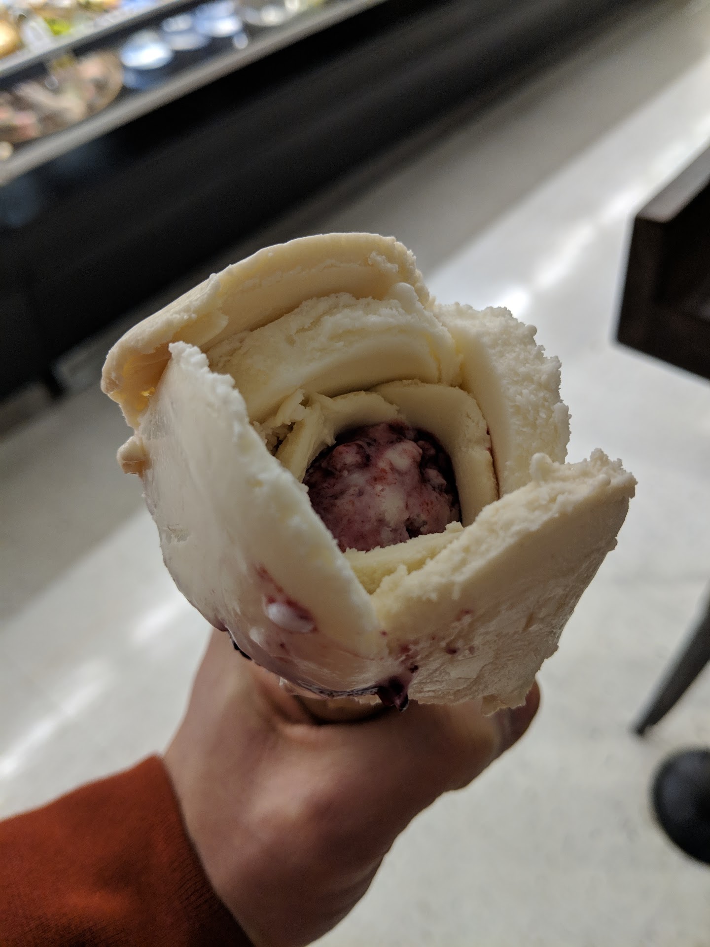 A lot of variety and unique flavours of ice cream. It was my first time trying gelato and this place did not disappoint. I like how they decorate their ice creams and use spoons that are not made of plastic.