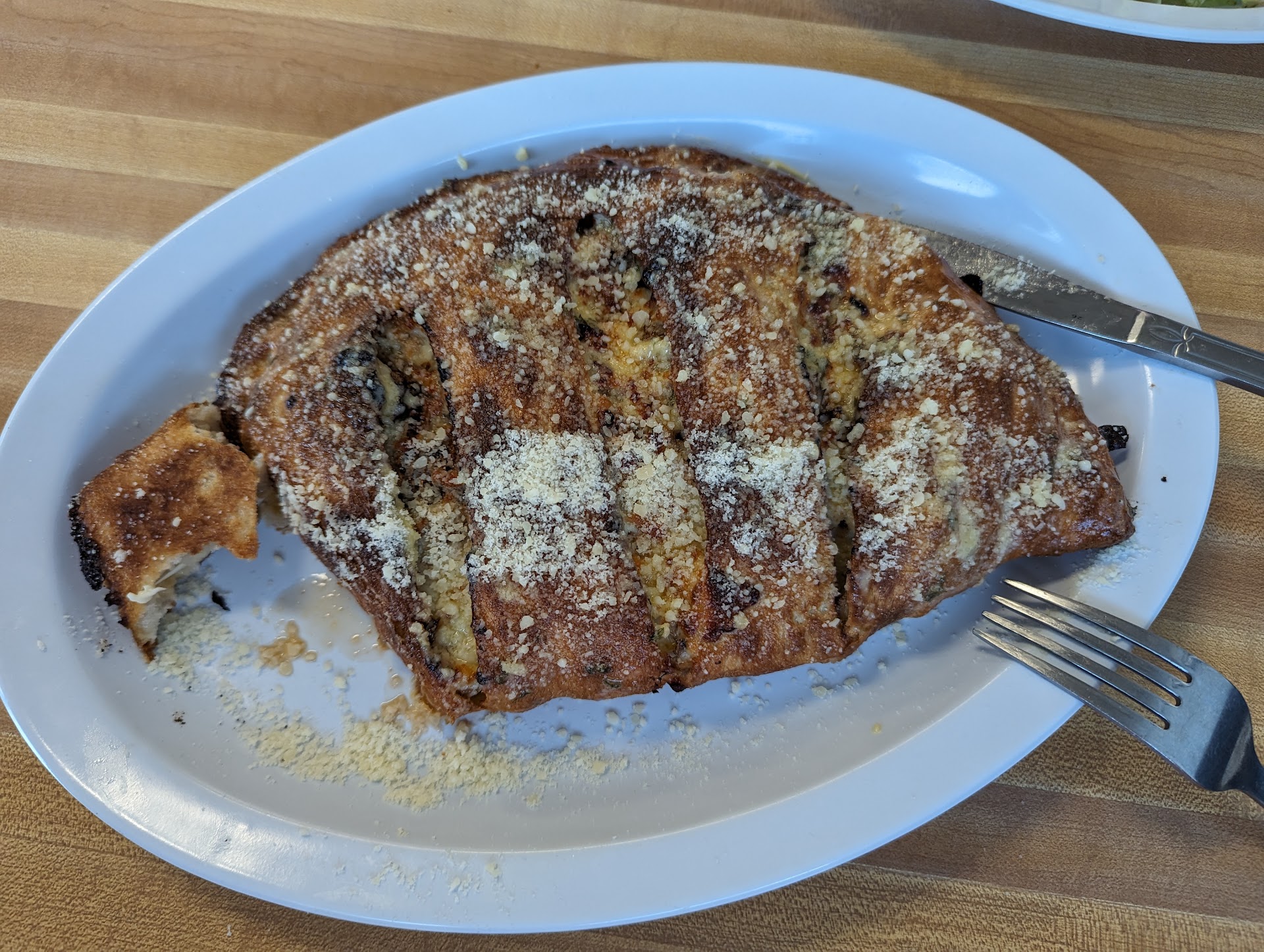 Our first visit. We got a tour of the menu and pointers in the most popular items. We chose a gourmet pizza, chicken alfredo, which has a creamy sauce and bacon along with chicken and onion.