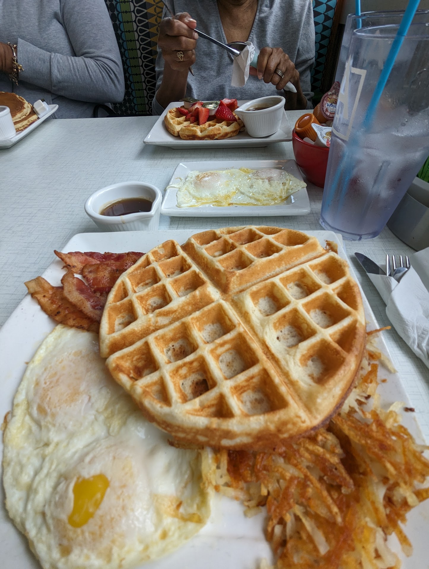 Read moreVery disappointing experience at a highly recommended establishment. It was understandably busy for a Saturday morning, but we were seated in a reasonable time with no issues. Our drink order was taken after a lengthy wait, and after another extended delay, we received an obviously dirty coffee cup. The server removed it, offered to replace it, but then placed it on a service tray and took another table's order. He then went back to the kitchen and served another table's meal while we waited. When the cup was brought, it was put on the table without comment as he walked by. Our food order was delivered and it was immediately found to have a hair in the pancake syrup. When we let him know he said "oh, okay, hang on" and went and took another table's order. As the food cooled, we watched him perform tasks around the floor before finally returning. We advised the manager and he seemed genuinely apologetic and offered us a large discount on the meal. When it came time to pay, the server took my credit card, swiped it, handed it back to me, and walked away without comment. He just left. My party and I were totally confused about whether I had paid, how much I had paid, and where he had gone. We finally got up to leave, and he returned with a clipboard for me to complete the transaction. Overall a very strange and disappointing experience. The food was above average and priced well for sure, but the service and standards could...