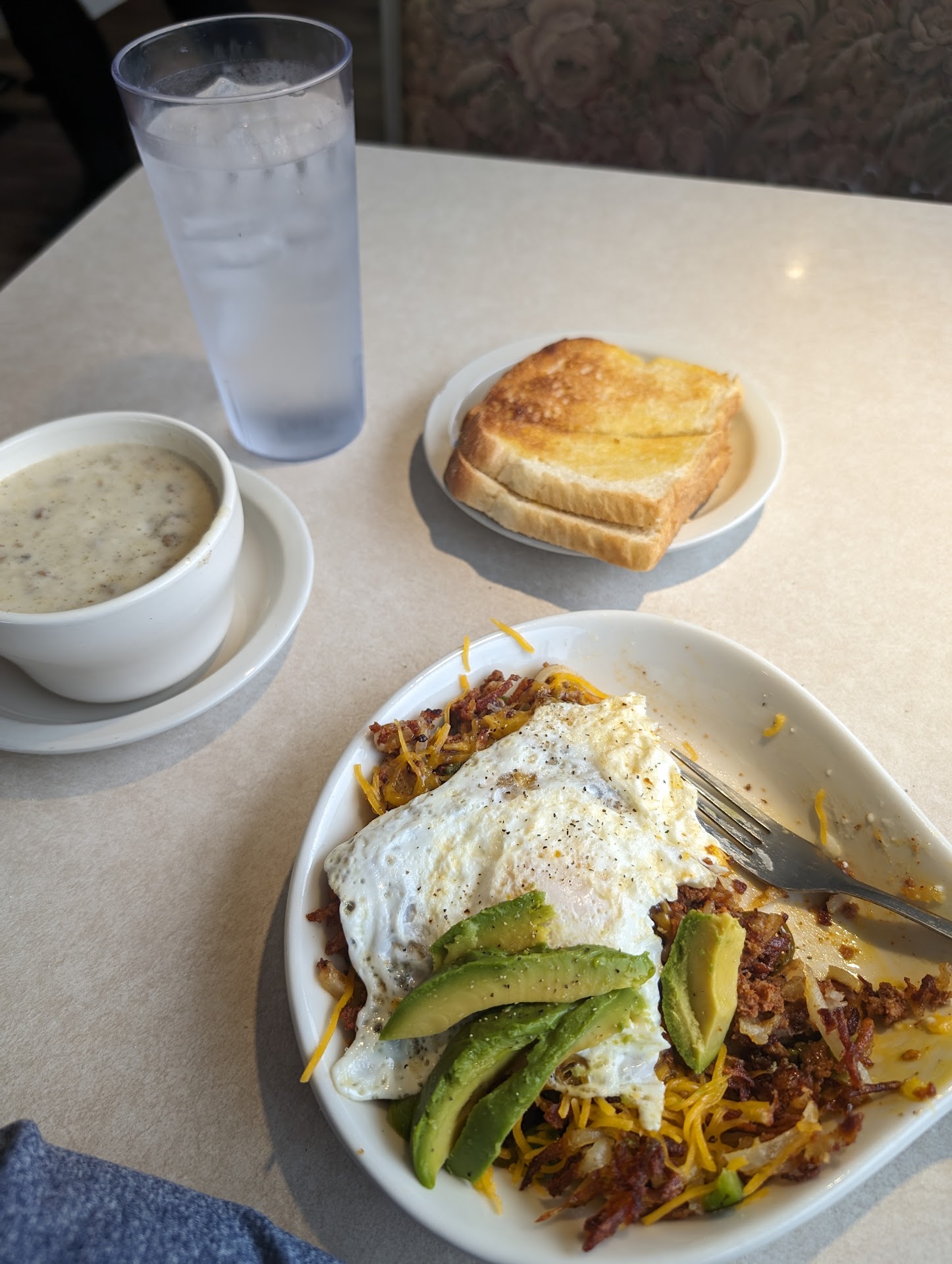 First come in and group of ladies standing in the corner chatting. One of the ladies finally sat me down. My âwaitressâ a joke of service. Asked what I would like. I ordered a soup and 3 egg veggie omlette with sausage. Meanwhile the time wait was horrible for not that many customers in there. There was about 4-5 ladies constantly standing in a group just talking. Instead of taking care of your customers. I had to ask her where my soup was. I already asked for it not to come out with my food. She says ooh well when they put it in the window I will grab it. Wthhh So she proceeds back in the group of girls talking in the circle. Finally all my food comes out. I said to her I asked for my soup not to come out with my food. She says Iâm sorry. Food was shoved on a smaller plate. Wasnât great. No sausage in my omelette. She never came once to ask if I needed anything. I had to ask for silverware. Donât waste your time or money. This place is completely garbage. Last thing it was 2 ladies actually doing their job a nice pregnant lady stay on top of her customers and another older woman. Shout...